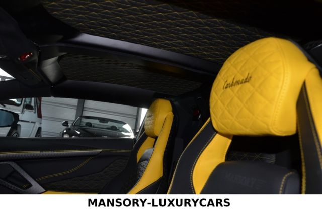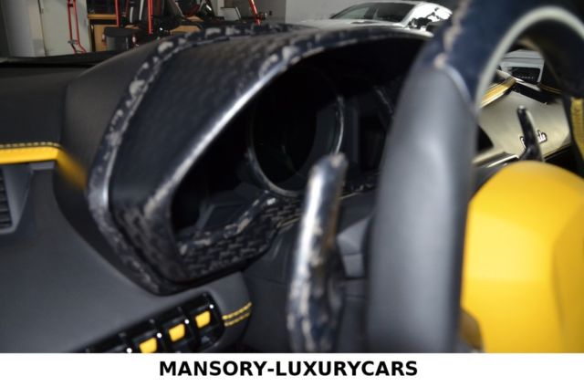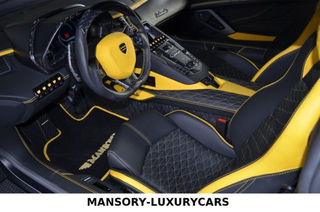 Carbon fiber is everywhere on the Mansory Carbonado GT. Carbon fiber five-spoke wheels, bumpers, diffusers, spoilers, fenders, and other bodywork transform the Aventador into a super-lightweight supercar that generates loads of downforce. Inside is a carbon fiber trim with quilted black and yellow leather interior designed to blend comfort and sport.