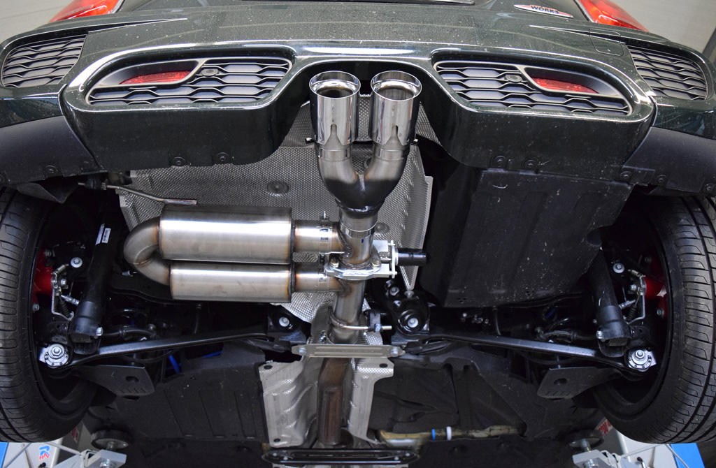 In addition to the new ECU tuning module, the Maxi-Tuner team developed a full MaxSound exhaust system that gives the MINI JCW a meaner sound. The customized MaxSound sport exhaust system is made from stainless steel and boasts two 70 mm centrally-mounted exhaust outlets. A special remote-controlled flap system uses an innovative design that allows both tailpipes to operate regardless of the position of the valve flap. Customers can also opt for the standard JCW tailpipes with the exhaust system if they so choose.