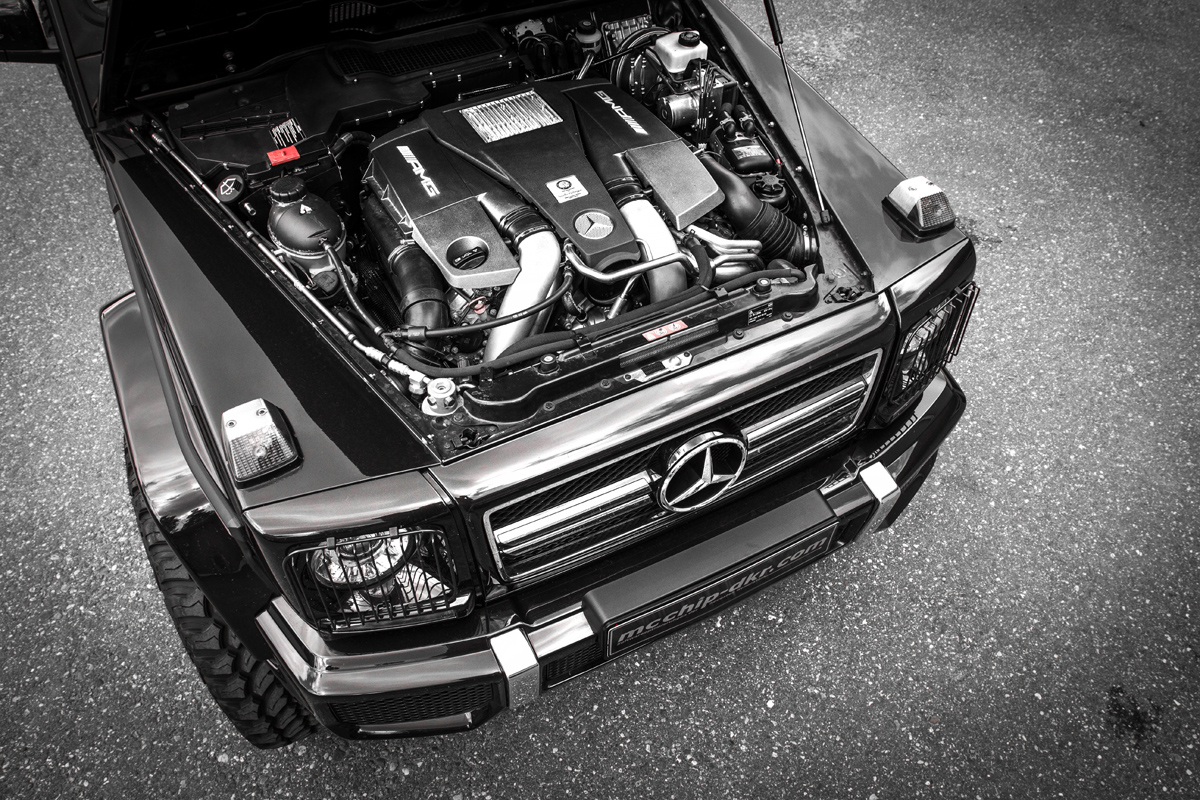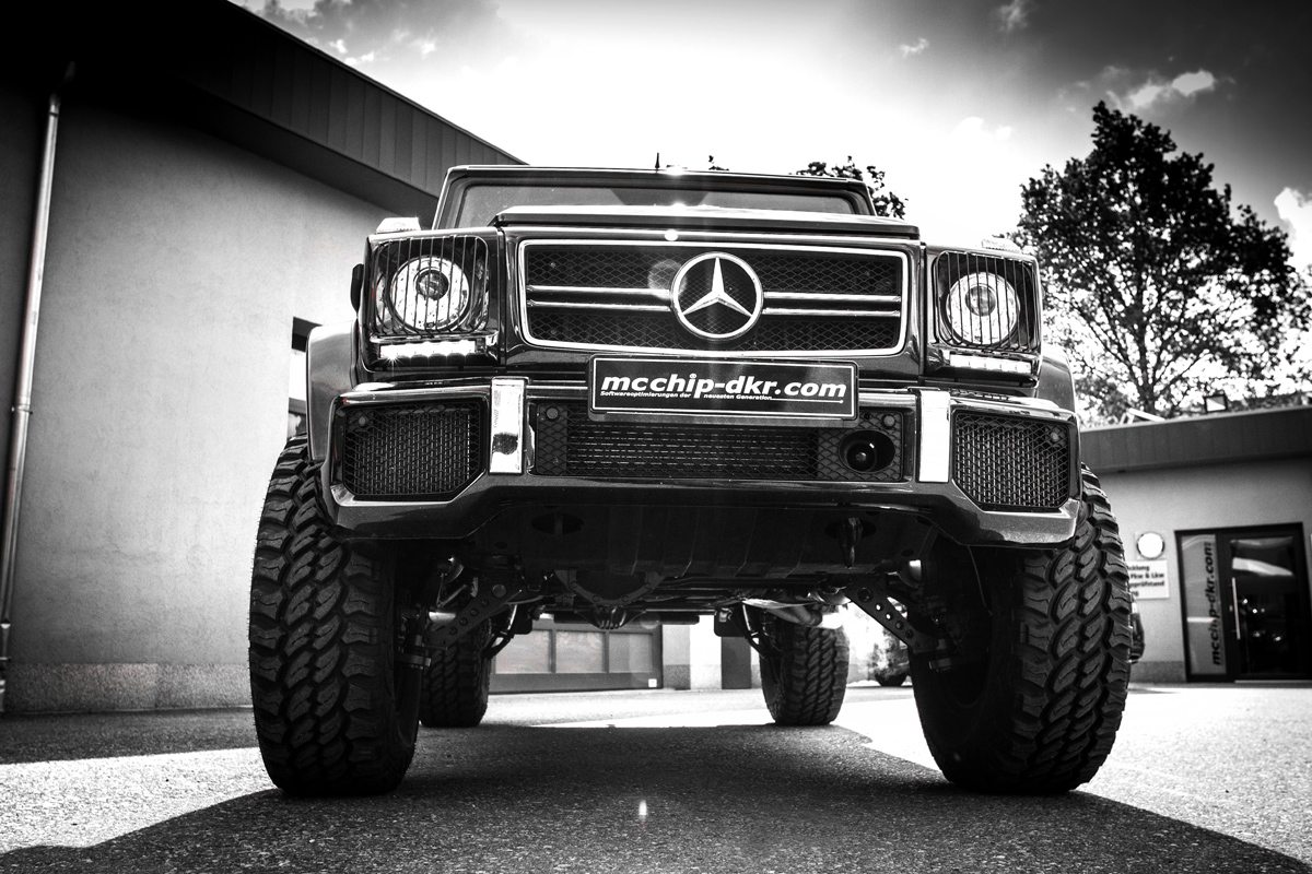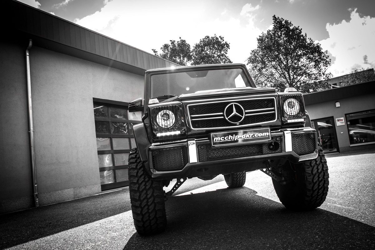 McChip-DKR is known for their software tuning for engines in all sorts of vehicle applications and their worked their magic once again with the 5.5-liter, twin-turbocharged V-8 in the G63 AMG. Here, the German madmen installed their Stage 4 software tune along with a new pair of turbochargers, piping, and sport catalytic converters. That pushes output all the way up to 810 horsepower and 701 lb-ft. of torque for the mighty four-wheel drive SUV.