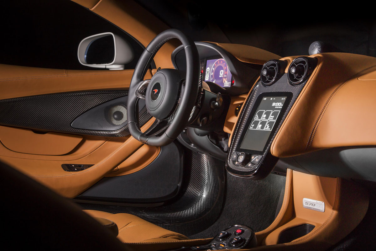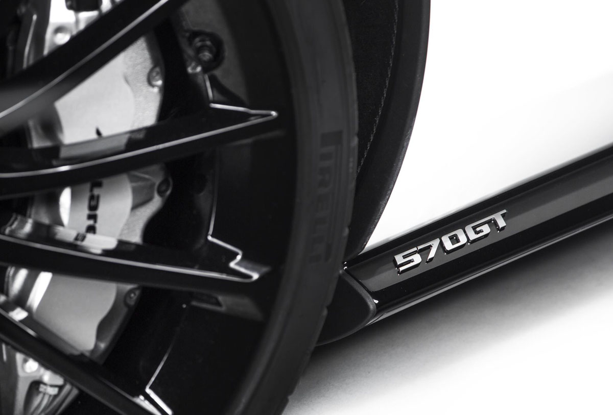 Behind the cabin in the same 3.8-liter twin-turbocharged V-8 engine spitting our 562 bhp and 443 lb-ft. of torque through the seven-speed seamless-shift gearbox. The engine in the 570GT by MSO Concept, however, does feature a new MSO Exhaust made from titanium alloy that is 30-percent lighter than the standard exhaust. The heat shields boast a golden titanium nitride tint that peeks through the rear air ducts and changes to a blue/purple hue when the exhaust system changes temperatures.