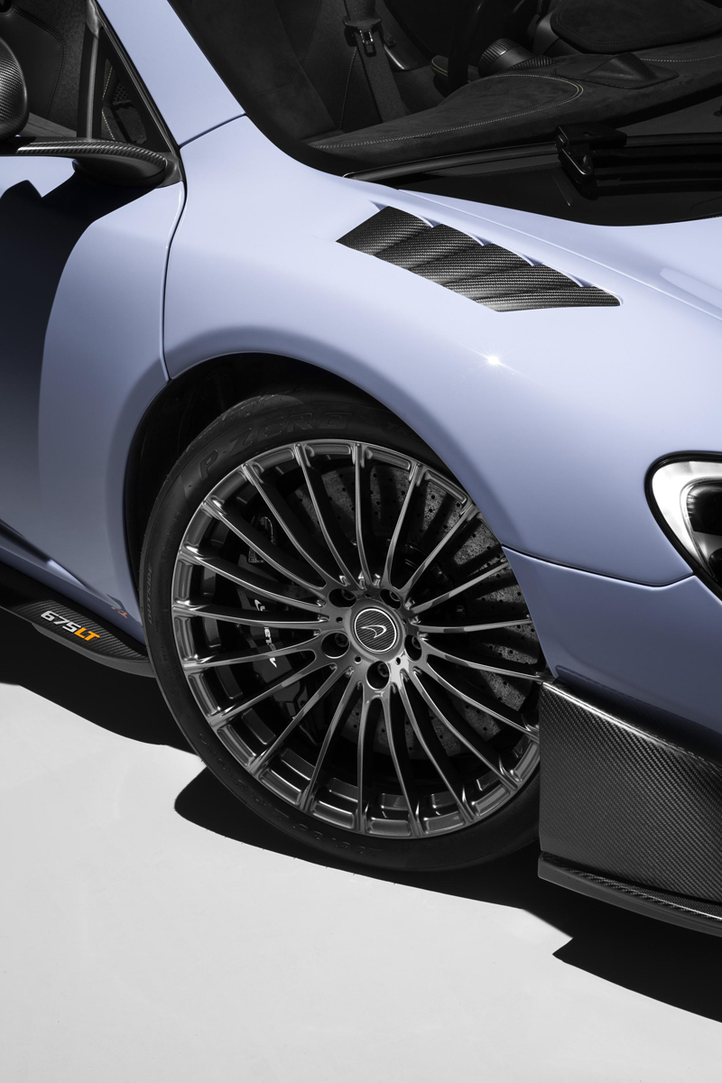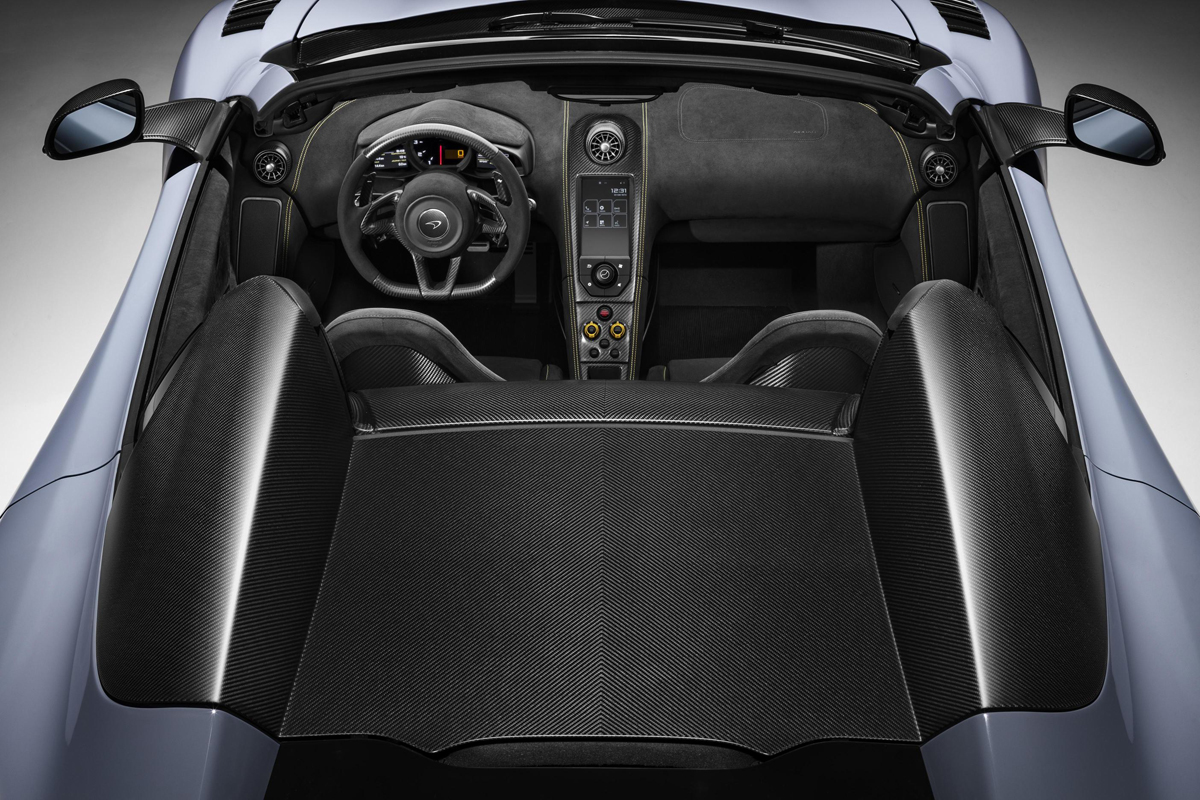 Inside the 675LT Spider by MSO are black Alcantara racing seats with Xenon Yellow stitching. The rotary controls each sport a Solis finish that’s unique to the 675LT Spider. Just like the P1 by MSO on display and the 675LT’s F1 ancestor, the exposed engine bay features a 24-carat gold heatshield around the titanium exhaust.