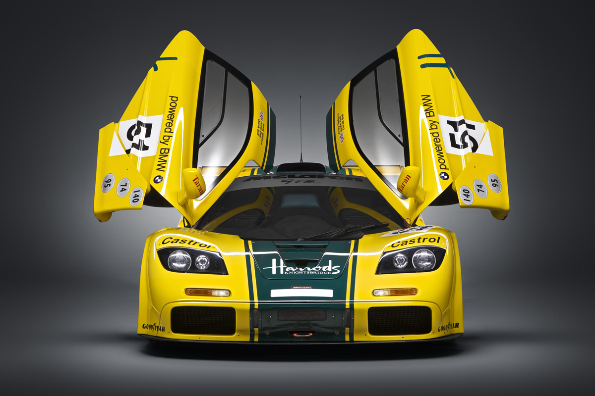 The new McLaren P1 GTR will wear a version of the livery that was worn by the McLaren F1 GTR chassis #06R that competed in the 1995 and 1996 seasons under Mach One Racing. Wearing a Harrods sponsorship and the number 51, the GTR was one of the famous seven F1 GTRs to participate in the 24 Hours of Le Mans. Its podium finish at the hands of Derek Bell, Justin Bell, and Andy Wallace cemented it in the history books. The car also won the final three races in the BPR Championship that season, sixth at the following 24 Hours of Le Mans, and a win at Silverstone in the Global GT Endurance Championship in 1996. The livery has been designed specifically for the P1 GTR to pay homage to the classic Le Mans winner and will be available to customers.