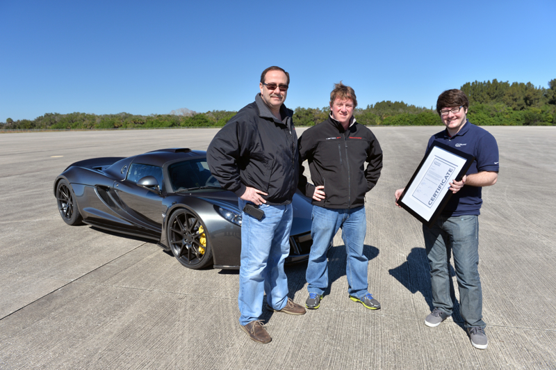 On February 14th, 2014, the Hennessey Performance Venom GT became the fastest two-seat sports car in the world with a verified 270.49 mph run. The speed was independently verified by Racelogic engineer, Joe Lachovsky. But what’s even more impressive is that the VBOX GPS data was still accelerating at a rate of 1 mph per second while speeding from 260- to 270 mph.
