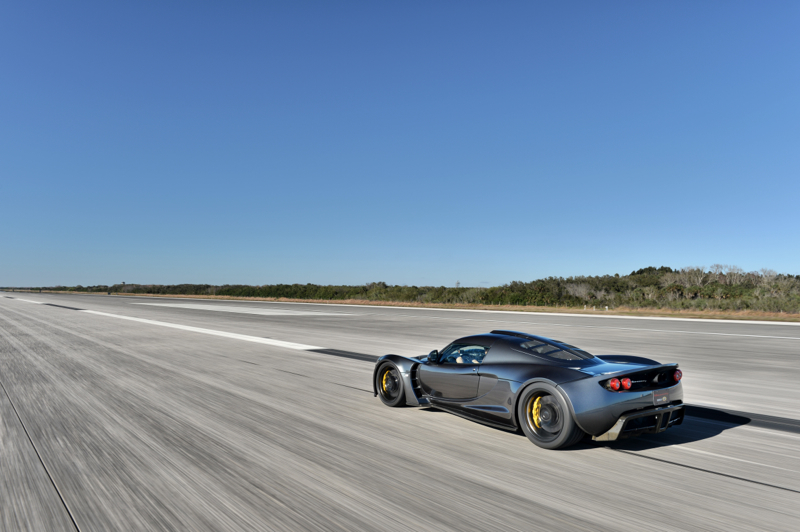 The run encompassed a total of 2.4 miles and was driven by Brian Smith, the Director of Miller Motorsport, experienced race driver and a former Michelin tire test engineer. “It was still pulling,” said Smith after the record run. “If we could run on an 8-mile oval we could go faster than that. On the very top end there was a little wandering but, hey, we’re going 270 mph! The Venom GT didn’t [require] any big corrections, and the Michelins held traction really well.”