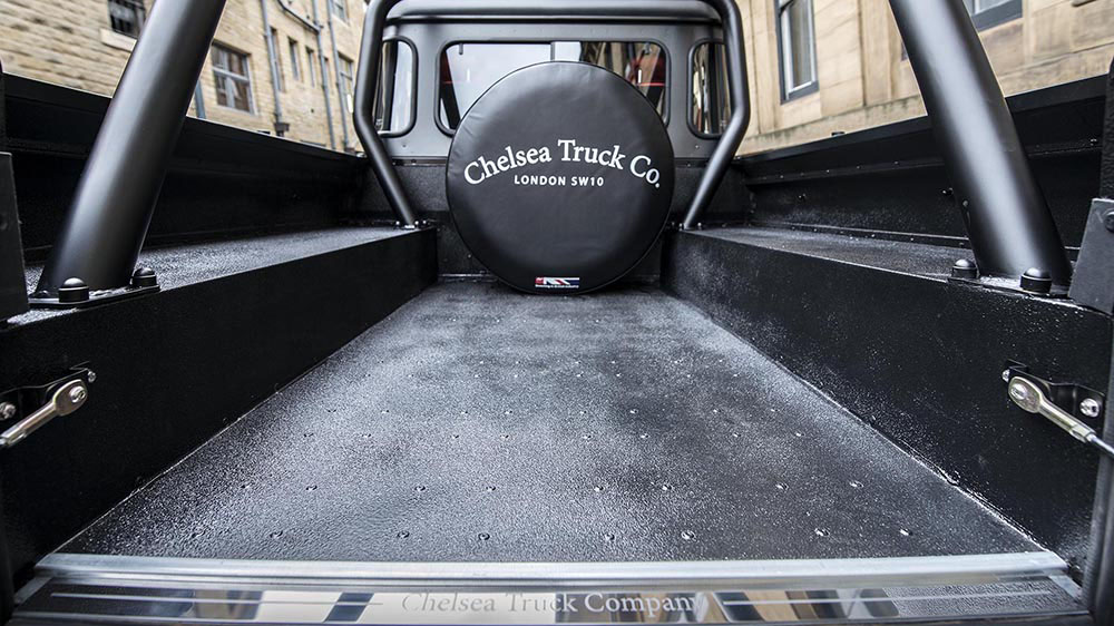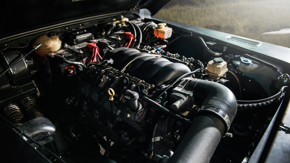 The original engine in the Land Rover Defender is also gone. In its place is a GM LS3 V-8 motor that’s packing 430 horsepower, giving the Kahn 6.2 V8 Flying Huntsman 6X6 Defender Double Cab Pick Up some serious muscle. A new GM six-speed gearbox does the job of handling all that power while a stainless steel exhaust system emits an angry growl.