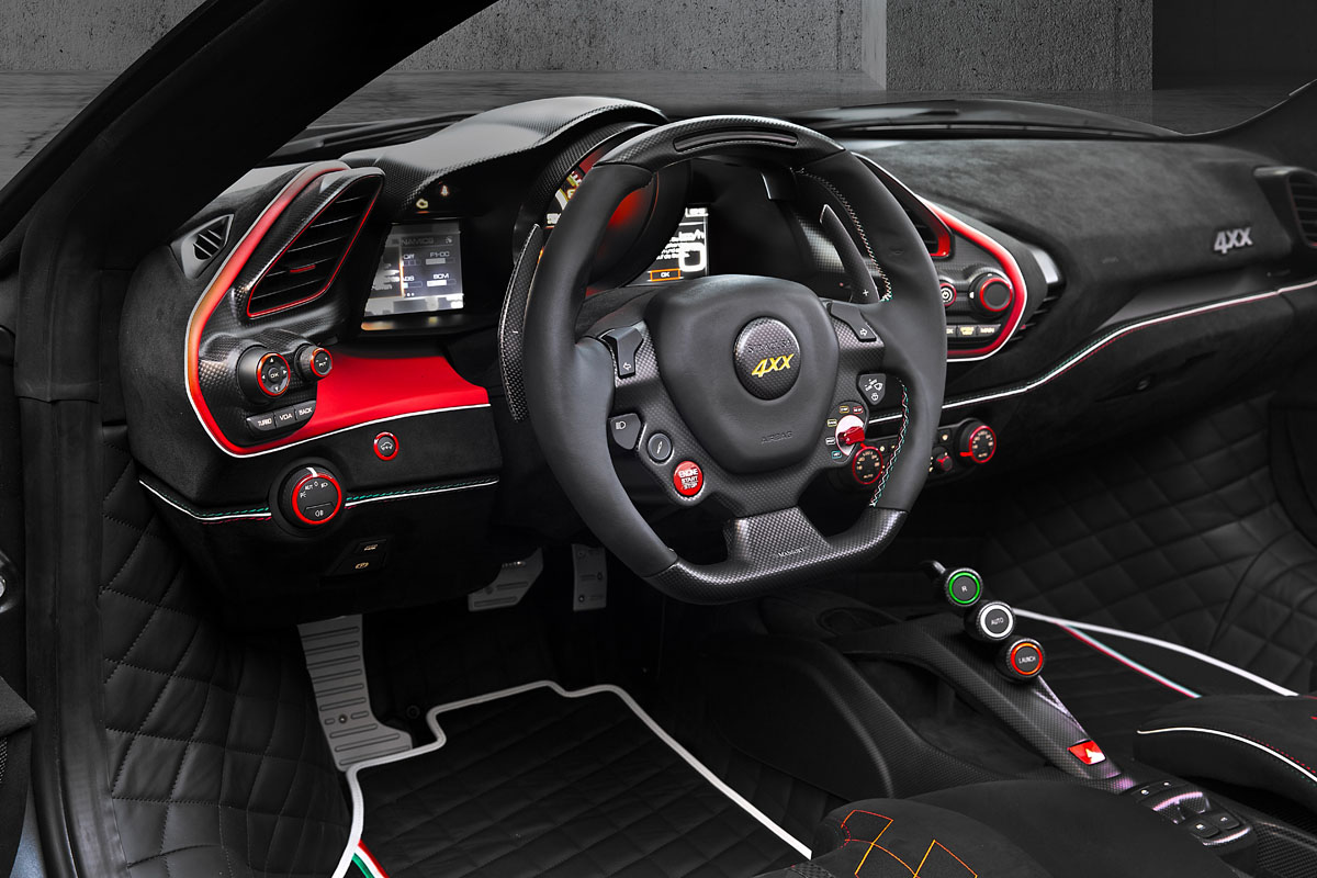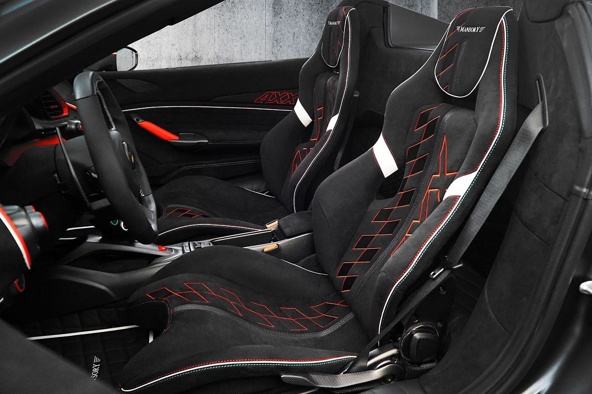 Inside, the cockpit of the Mansory 4XX Siracusa Spider is worthy of showing off with the top down. A new sports steering wheel blends carbon fiber and leather while offering better control for drivers. All of the interior components were also given the full leather treatment with contrasting stitching. New ‘4XX’ logos can also be found on the seats, door entry sills, and floor mats.