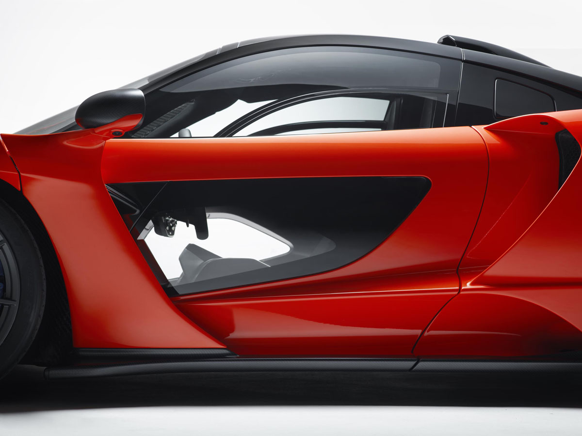 Drivers can enter the McLaren Senna by using the F1-inspired dihedral doors. These carbon fiber doors have two-piece glass windows with a fixed top and open lower portion as an option as opposed to the standard carbon fiber pieces.