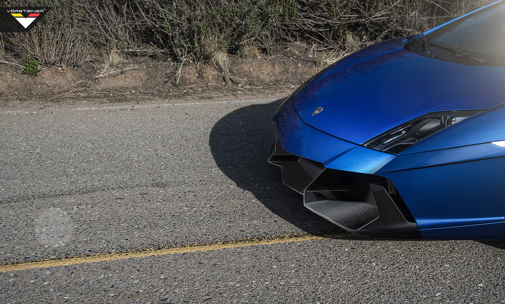 The new Gallardo Renazzo can also be optioned with a few aerodynamic add-ons. Vorsteiner offers a new 2×2 carbon fiber splitter that helps to generate downforce along with an optional set of dual optical 2×2 carbon fiber fins.