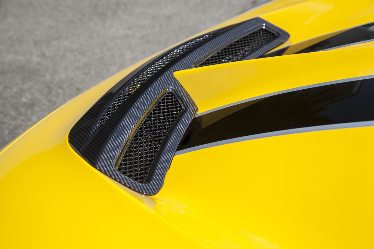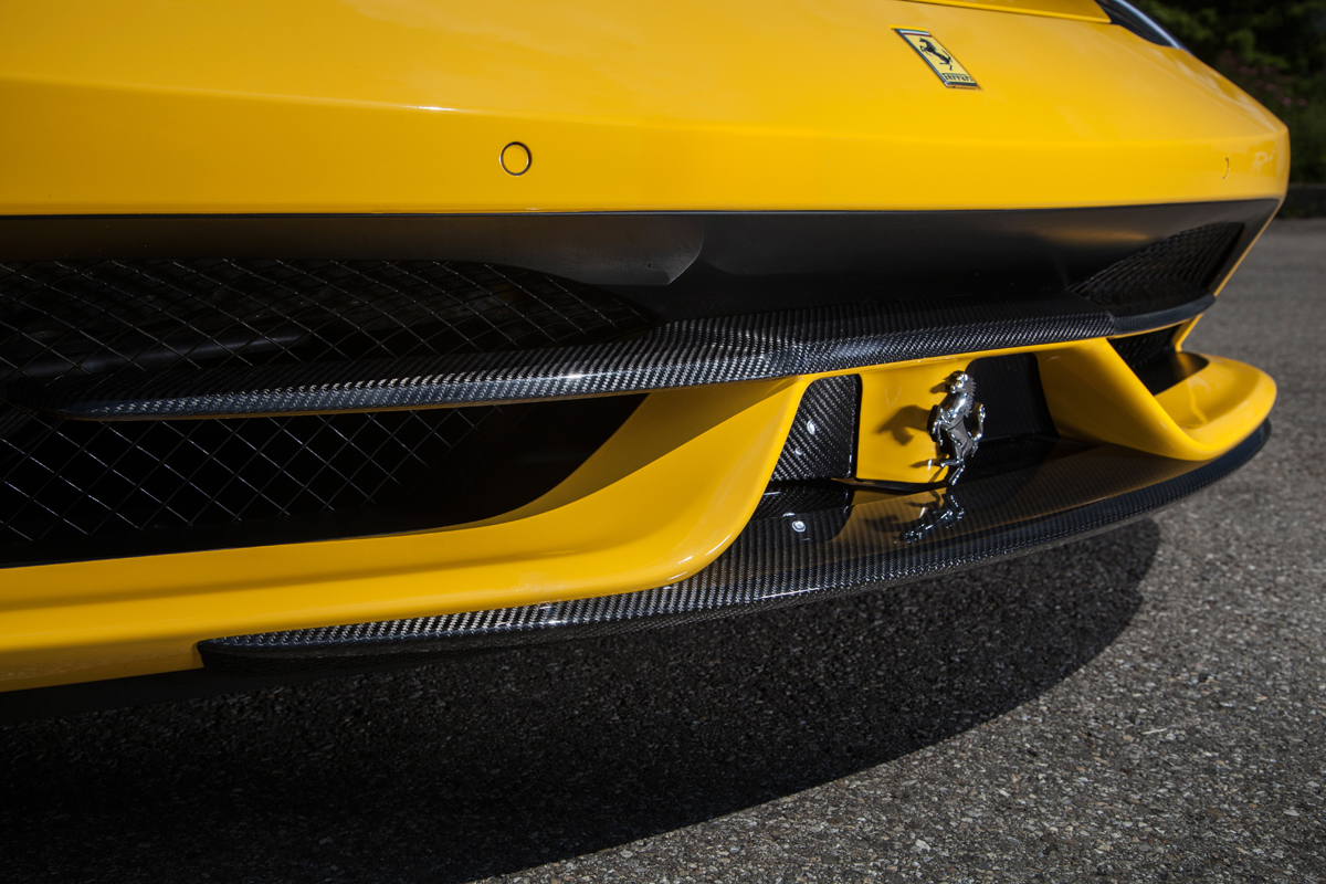 The Ferrari 458 Speciale was equipped with a new front spoiler and blade that helps to generate downforce. The central air inlet and hood gain new carbon fiber fairings for better airflow. Along each side of the supercar sit carbon fiber mirror mouldings and door triangles, side sills, and gill-shaped inserts for the rear windows. New air deflectors help to channel air right into the engine bay and help cool the engine and oil coolers. The rear benefits from a new spoiler and carbon fiber diffuser that work with the factory electronically-adjustable active aerodynamics for better downforce and performance. Carbon fiber also makes up the roof and hood along with the vent outlets and fog light surrounds. The finishing touches come in the form of black-tinted taillights with carbon fiber covers, turn signals, and LED brake light for a more sinister appearance.