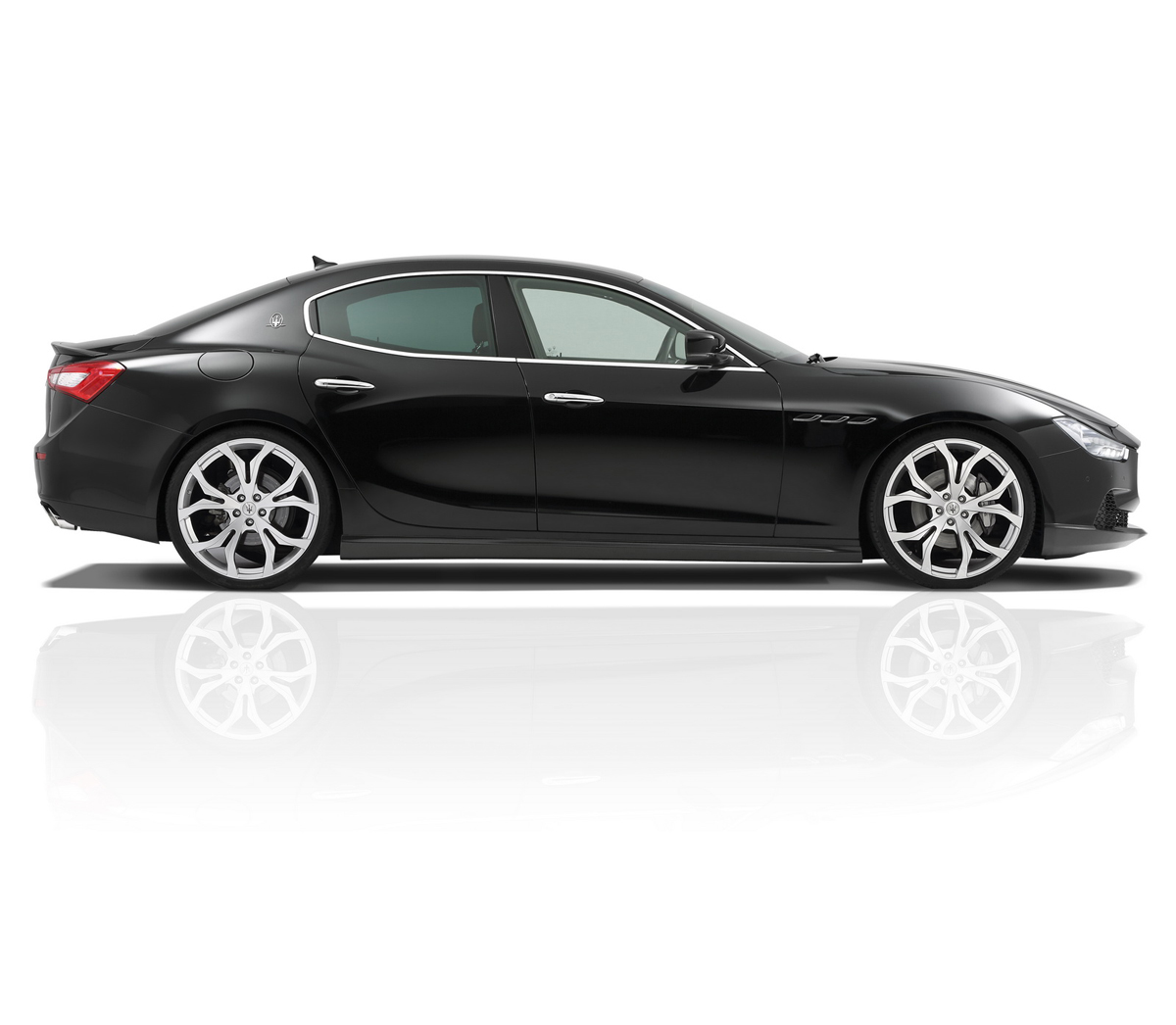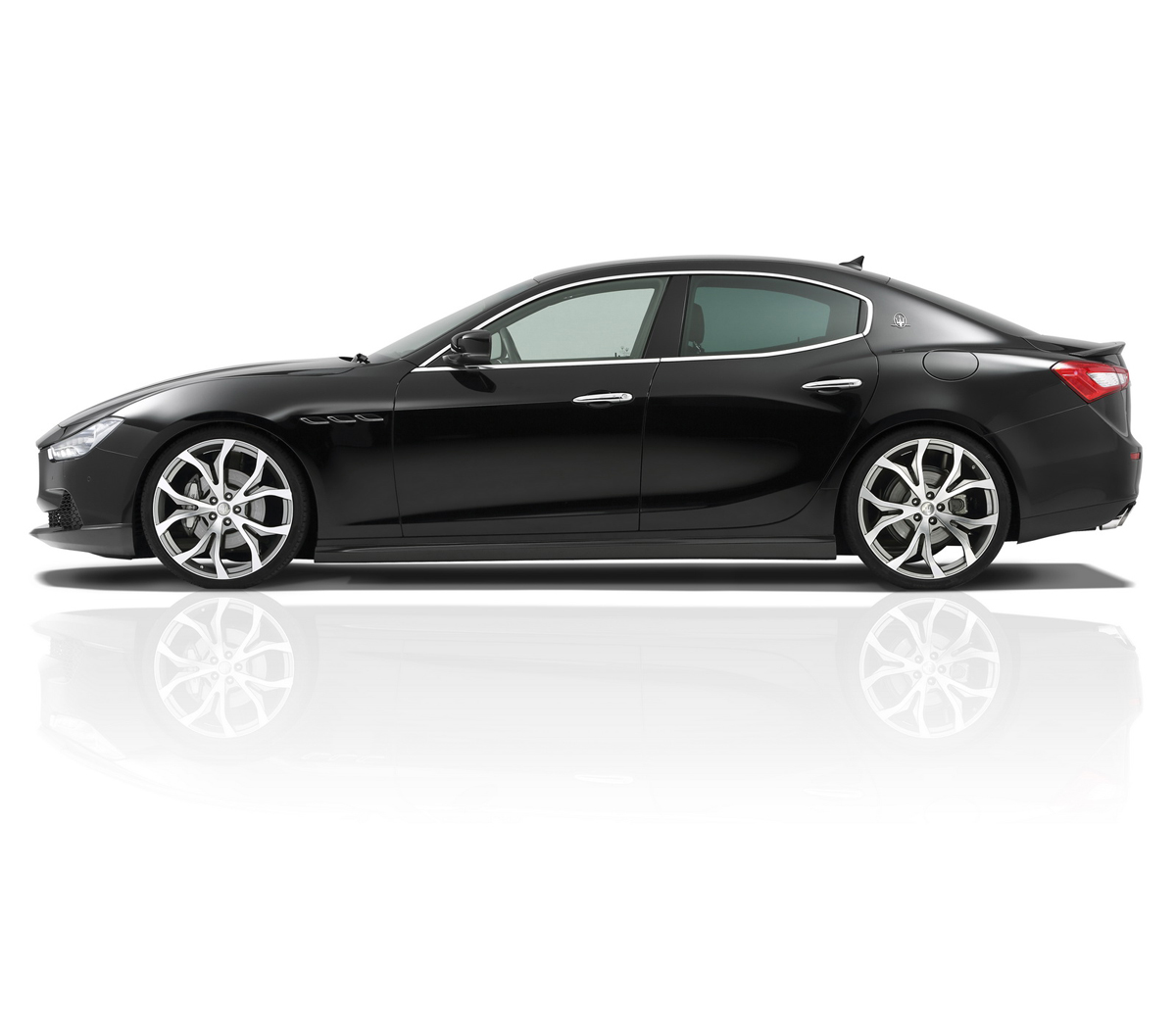 The job of putting all that power to the asphalt rests on the new one-piece forged Novitec Tridente NM1 alloy wheels in a silver, matte black, titanium, or polished titanium finish. The Maserati Ghibli wears the five double-spoke wheels in a 22-inch diameter with Pirelli P Zero tires measuring 255/30 ZR 22 front and 315/25 ZR 22 at the rear. Working in cooperation with the large wheels is a height, rebound, and compression-adjustable stainless steel coilover setup that can be installed on all the model variants. For the all-wheel drive Maserati Ghibli S Q4, a set of sport springs can be installed that lowers the ride height by 35 mm.