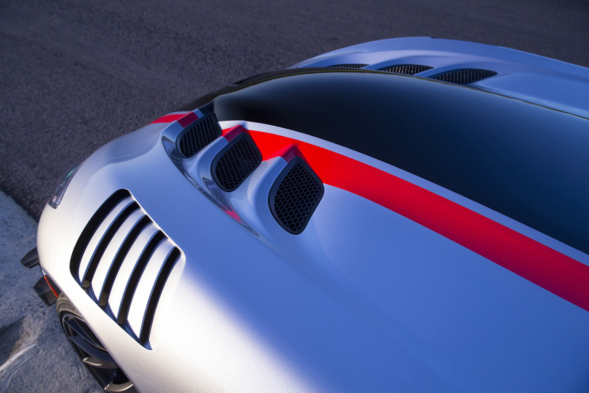 The new Extreme Aero Package for the 2016 Dodge Viper ACR sports a large 1,876 mm wide adjustable dual-element rear wing and sits taller, further backwards, and has special end-plates and gurney lip. Beneath the behemoth wing sits a carbon fiber diffuser with six removable strake extensions for greater stability. Removable hood louvres up front allow hot air to dissipate and reduce air pressure in the front wheel wells. A new detachable front splitter and dive planes keep the 2016 Dodge Viper ACR balanced at sticking to the track at any speed.