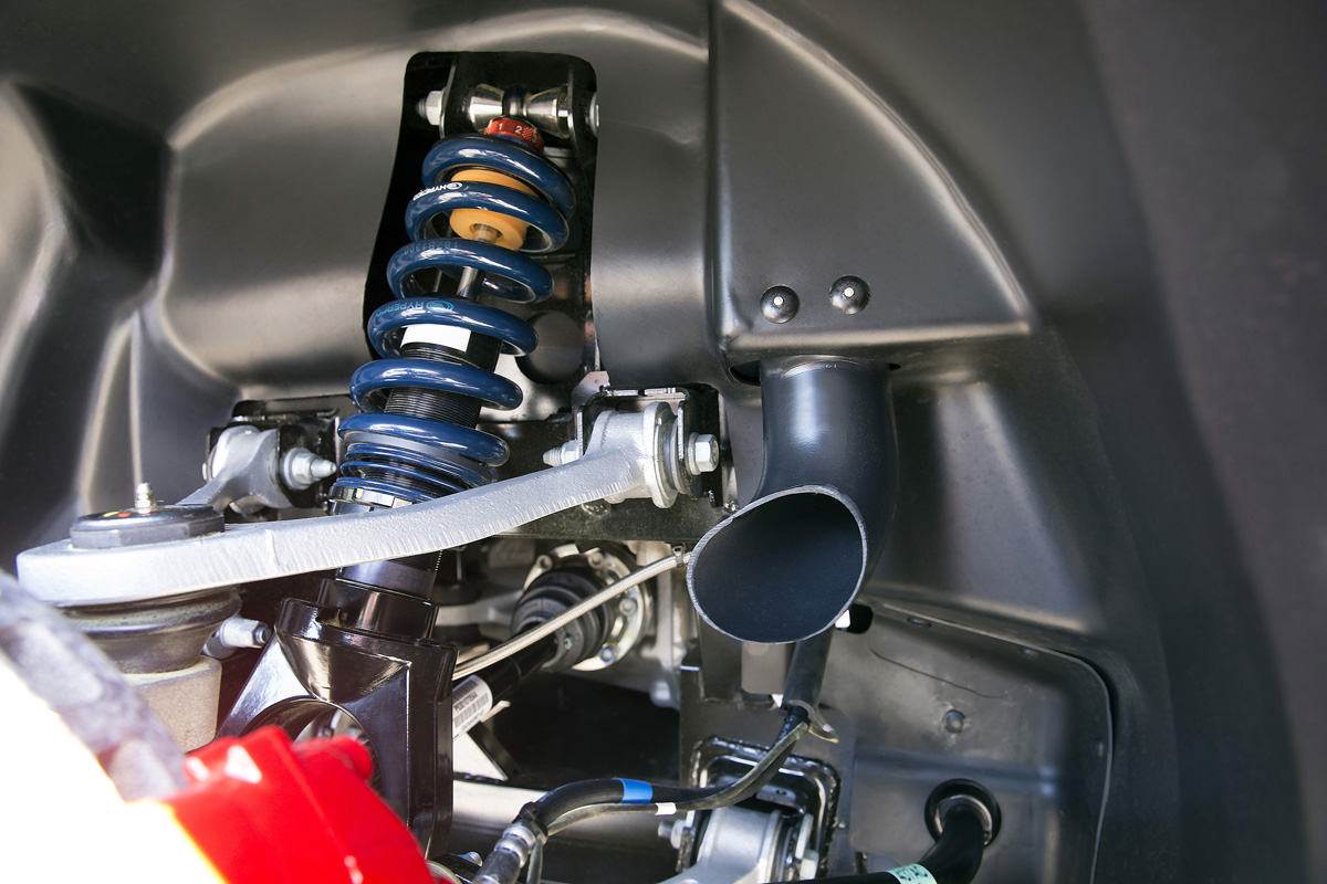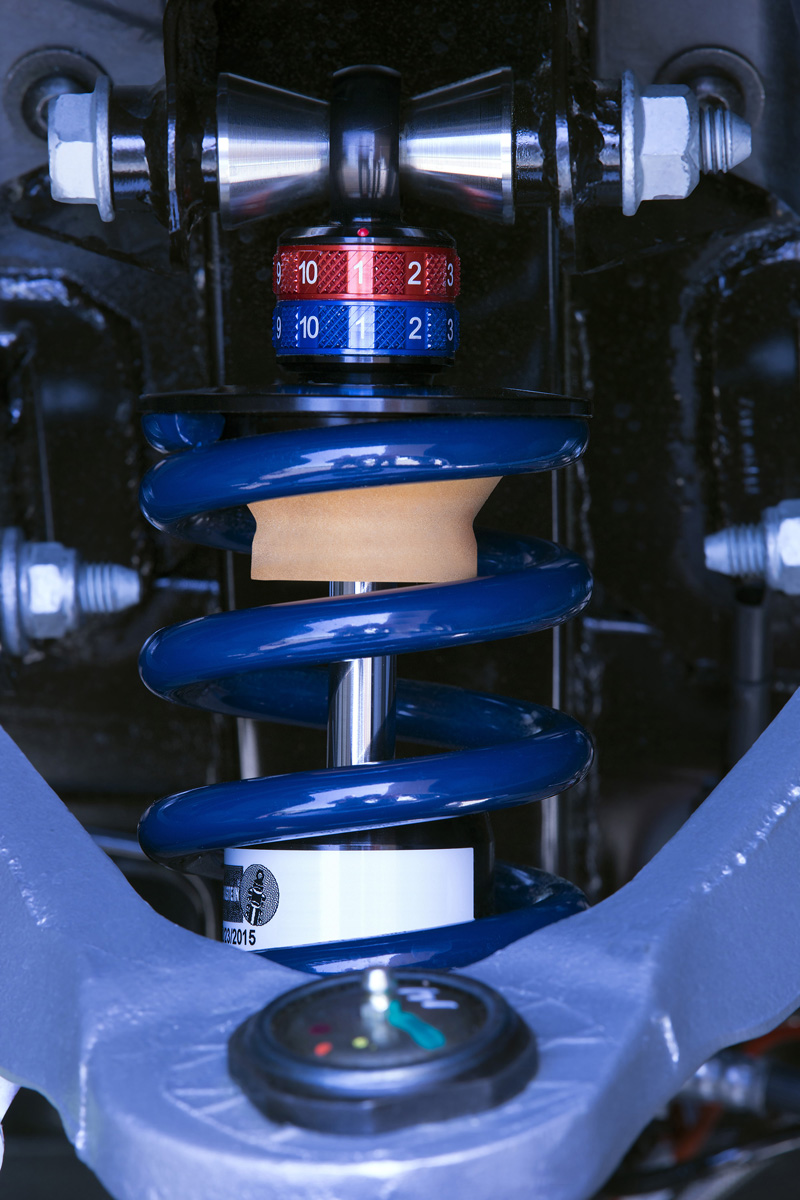 Aerodynamics were only part of the equation on the 2016 Dodge Viper ACR. The menacing looks work with the hardcore chassis to generate otherworldly levels of grip. New aluminum-bodied, double-adjustable coil-over Bilstein racing shocks were designed specifically for the ACR snake. Each shock allows for 10-way adjustability in terms of rebound and compression as well as over 3.0-inches of height adjustment. These work with the pavement-pounding 600 lb./in. front springs and 1,300 lb./in. rear springs that are two times stiffer than those used in the Viper TA. A full race alignment and 1.4-degrees of extra negative camber at the rear help to generate more than 1.5 G of lateral grip in high-speed turns.