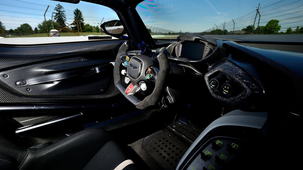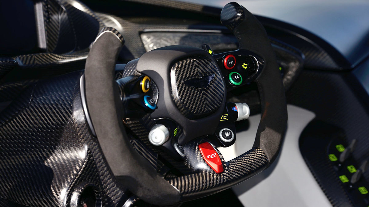 A four-way adjustable pushrod suspension, sticky tires, and aerodynamics that are designed to generate loads of downforce and keep the Vulcan planted firmly to the asphalt as it slices and dices the track. Even the cockpit is tailored for racing with FIA-approved safety measures and roll cage around the Recaro seats and bespoke carbon fiber steering wheel.