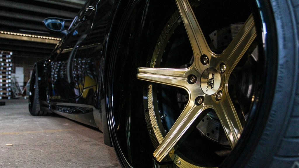 The two-door E92 BMW M3 was the perfect platform to put the new wheels on display thanks to its reputation for having unrivaled driving performance. The new PP Exclusive Deep Concave forged wheels with their three-piece construction feature an anodized aluminum outer rim with thin, five-spoke design. Special carbon inlays add a unique touch to the deep-dish, concave wheels. Up front, the M3 wears the Deep Concave wheels in an 11.0 x 20 fitment while the rear comes in at a massive 13.0 x 20 setup.