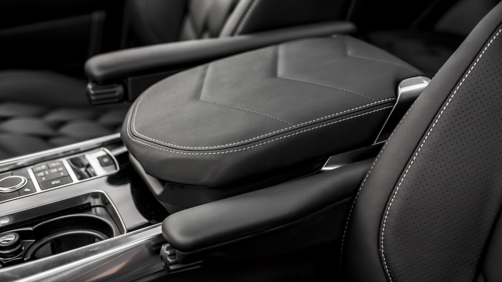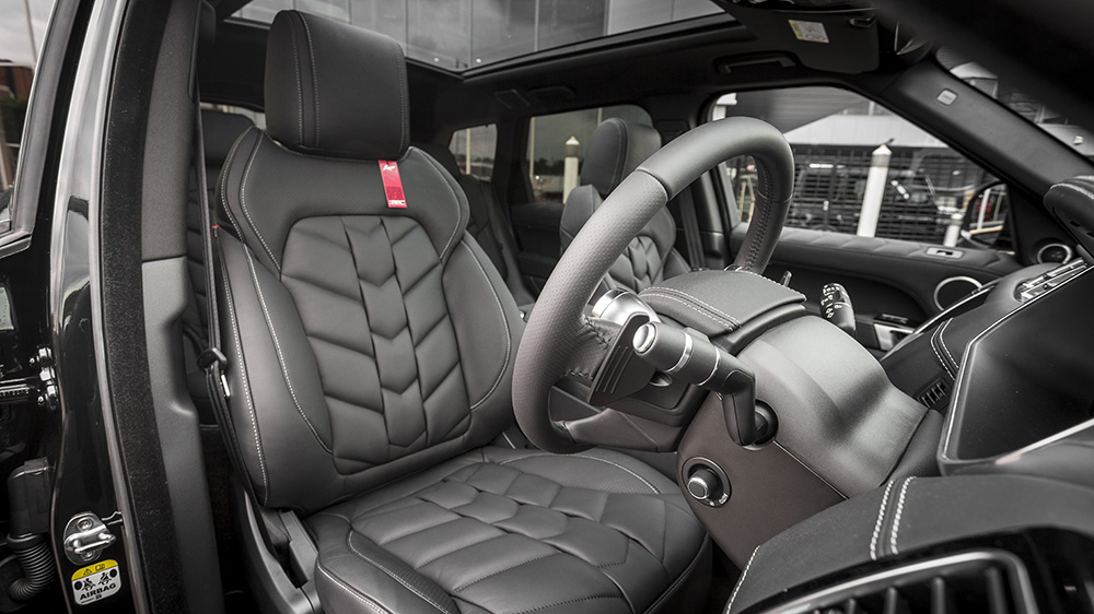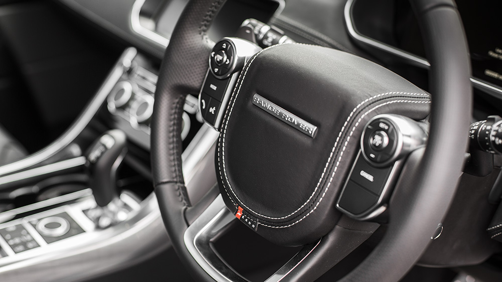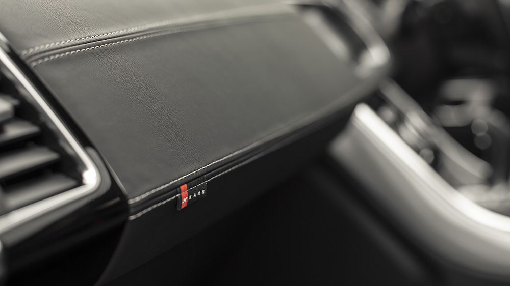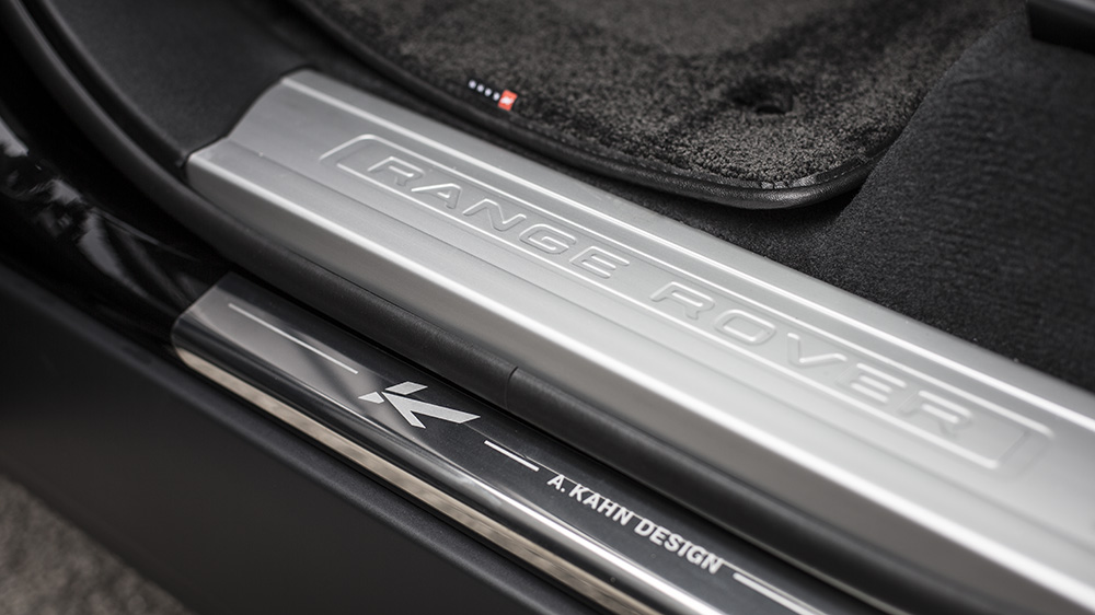 Inside, Project Kahn gave the Range Rover Sport HSE Signature Edition a more custom feel for drivers and passengers to enjoy. Black quilted and perforated leather adorns the front and rear seats, and is matched by a re-upholstered leather steering wheel hub and Nappa leather door tops. Below the beltline are stainless steel door entry sill plates and vented foot pedals in machined aluminum. A special red enamel Kahn key ring and ‘Kahn Investing in British Industry’ logo are proudly part of the transformation.