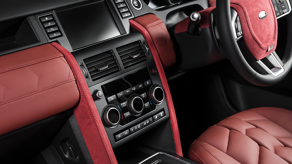 Inside is where the real magic unfolds. The Project Kahn Land Rover Discovery Ground Effect Edition features a special Red Herringbone leather interior. The leather package includes all of the seats. Door card tops, dashboard, and center console for a comfortable and refined feel. Soft yet grippy alcantara adorns the centers of each door card along with the steering wheel center hub. To finish it all off machined aluminum door entry sills and vented foot pedals decorate beneath the beltline.