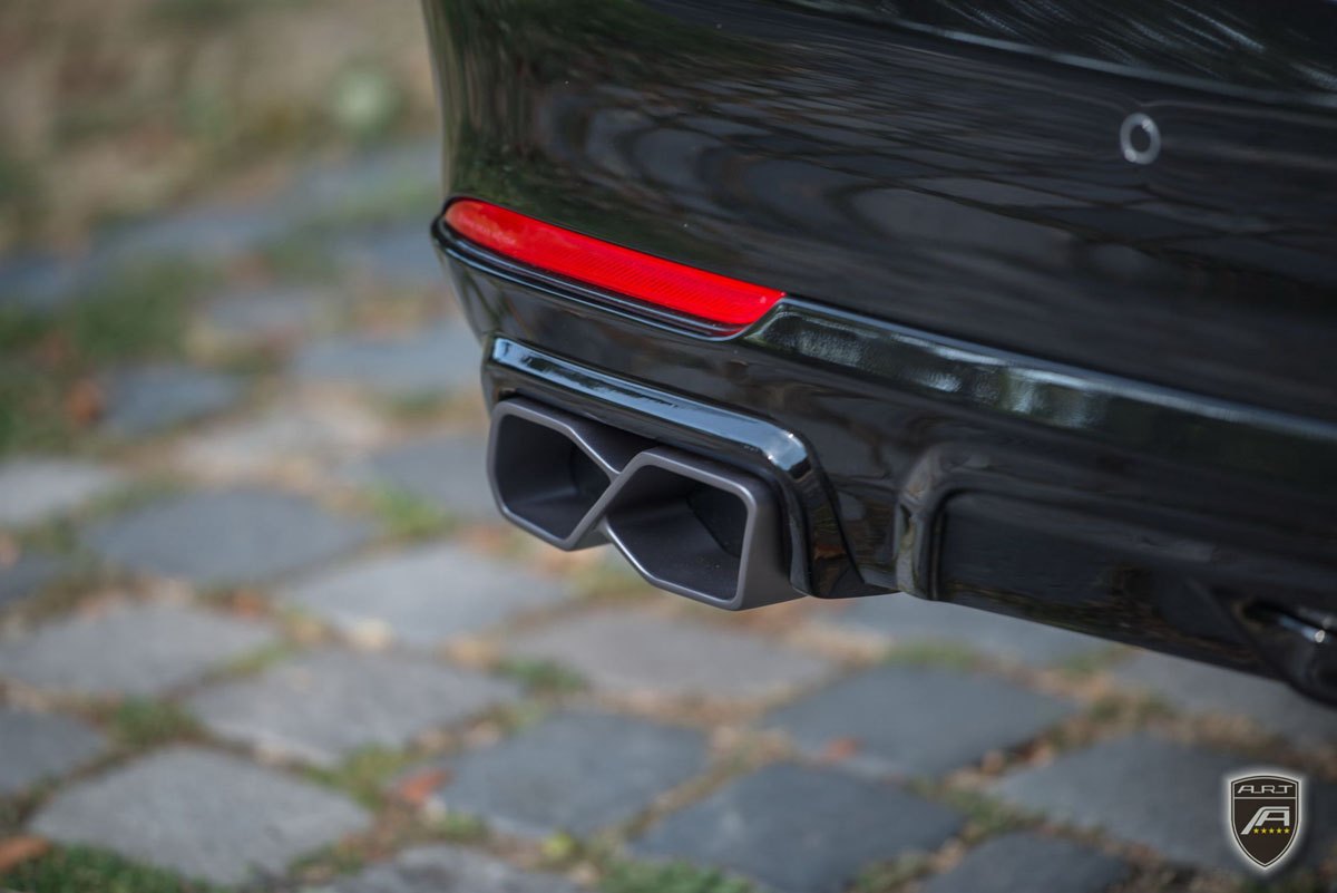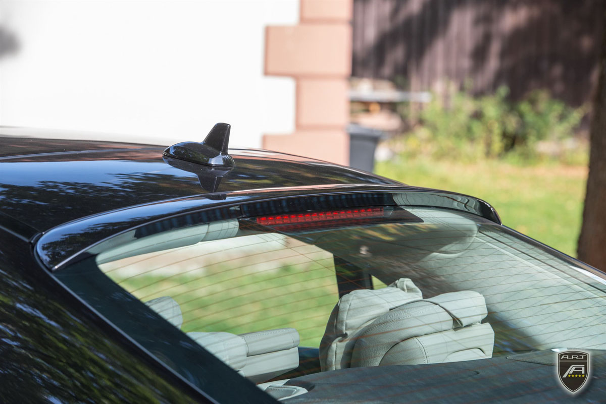 The new A.R.T. LS upgrade package starts out with a full exterior transformation that keeps the understated high-class character of the German sedan. A new front spoiler with flanking air vents create a more dramatic fascia. As air moves towards the rear, it’s met by a pair of side skirts then a rear diffuser with dual Gunpowder-finished tailpipes. Above the new diffuser sits a trunk spoiler and a roof spoiler while new A.R.T. Tuning badges adorn the body.