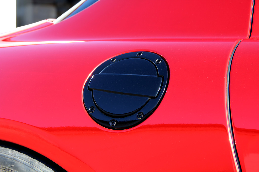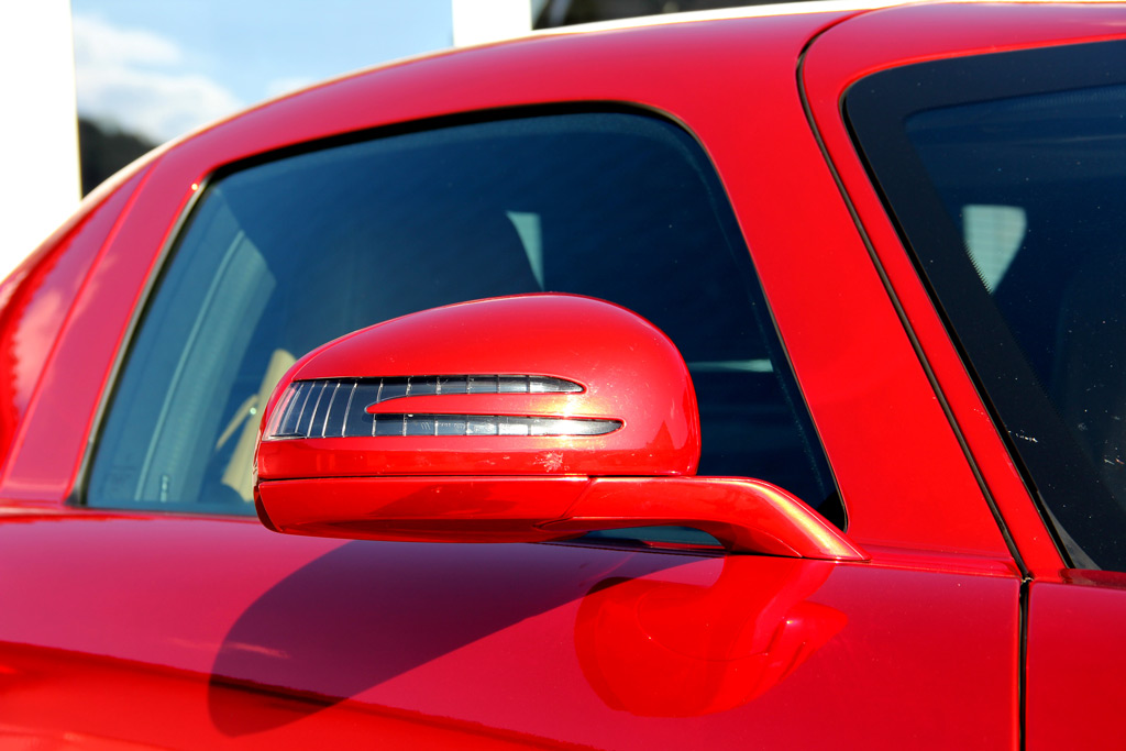 The Gullwing monster from Germany is dressed in a full Mirror Chrome Red foil wrap that instantly grabs attention with its light-reflecting finish. The dazzling exterior also wears some contrasting black foil around the prominent front emblem, the badging, and the fuel filler cap.