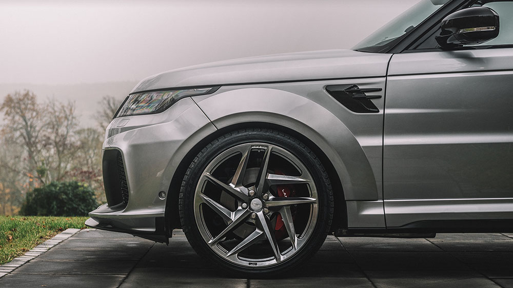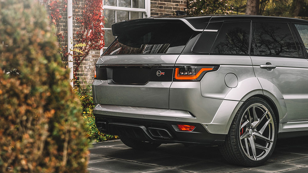 Visually, the new Project Kahn Range Rover Sport SVR Pace Car First Edition exemplifies ‘The Road is My Catwalk’ principle that Afzal Kahn follows. The modern front fascia is more aggressive thanks to a new bumper spoiler and aggressive splitter combo that play perfectly with the newly extended front and rear fenders with integrated air dams. A new vented grille with air dams and bumper center section allude to the massive power that’s hiding beneath the hood. At the rear, a new tailgate panel, bumper valence with integrated exhausts, and three-piece aero wing proudly sit, ready to fly.
