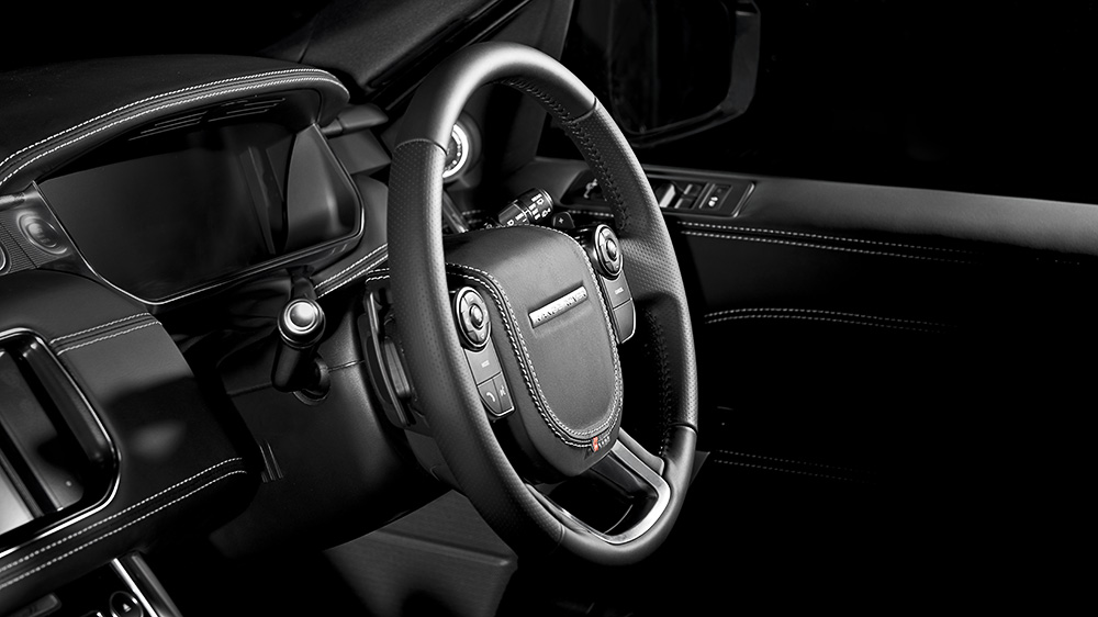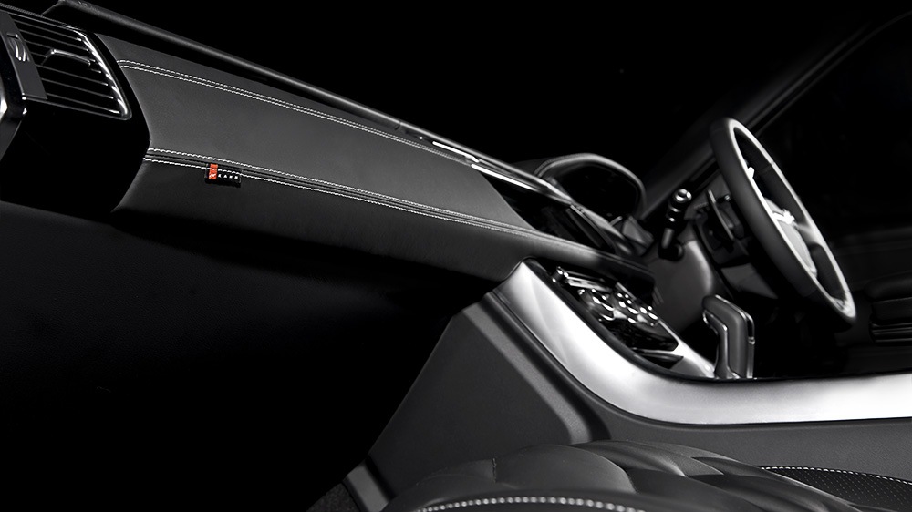 Inside the Project Kahn Range Rover Sport HSE Colors of Kahn Edition is a sea of comfortable Ebony leather with contrasting stitching. Drivers also get the added benefit of a re-upholstered steering wheel with the same Ebony leather and contrasting stitching combo while machined aluminum foot pedals sit beneath. The final touch of elegance is a new set of aluminum door entry sill plates with A Kahn Design branding.