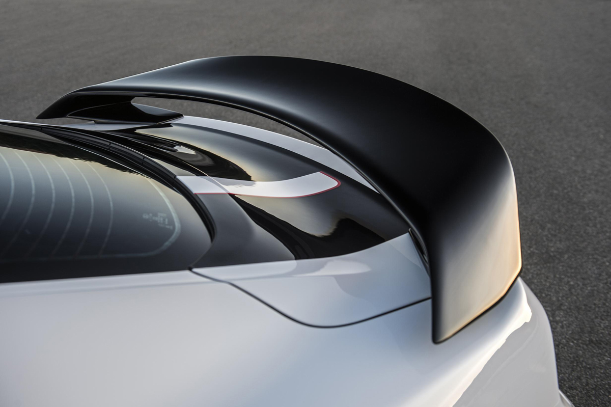 Under the leadership of Ford Design Manager, Melvin Betancourt, the Apollo Edition Ford Mustang was given all sorts of American space program details with an eye on performance. A special one-off glossy pure white paint combines with a pure black color and various U.S.A. and N.A.S.A. decals to create a powerful aviation statement. Carbon fiber makes up the large front splitter, rear diffuser, accents, and side skirts. The latter sits above a special LED underbody lighting system that emits a dark yellow glow.