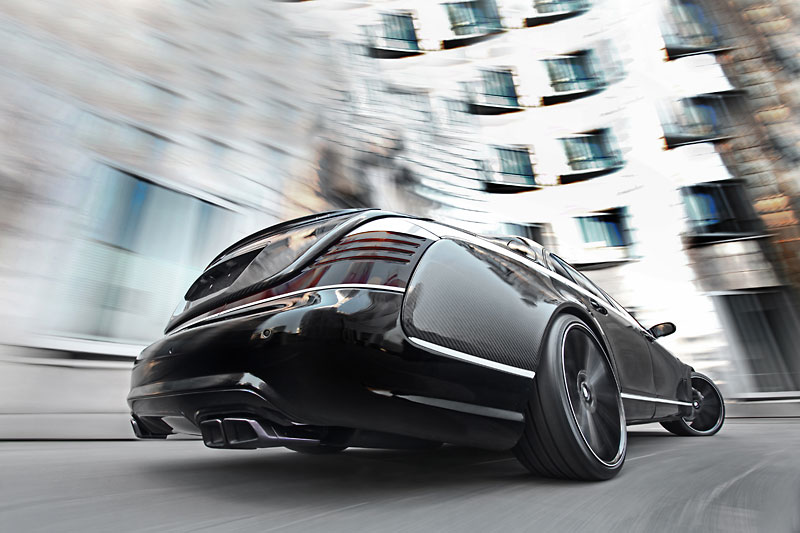 The new “Sir Maybach” Maybach 57 S has been given a full makeover inside and out. Visually, the front and rear bumpers were replaced with sportier units and given integrated LED daytime running lights up front and a new diffuser at the rear. Carbon fiber makes up the hood and trunk of the luxury sedan to shed a few pounds along with the three pillars, front and rear fenders, and all four doors. Two spoilers are positioned at the rear window and trunk lid to improve stability at high speeds. Even the engine bay is covered in the carbon fiber with the cover and air filter boxes constructed of the lightweight material.