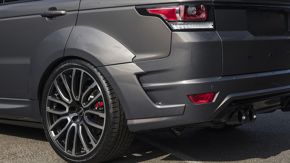 At the rear of the new Project Kahn Range Rover Sport Autobiography Dynamic Pace Car, a new set of stainless steel quad cross-hair exhaust tips in Satin Black protrude from the rear bumper, and add a visual and audible improvement. Above, new ‘KAHN’ lettering stretches across the lower part of the trunklid.