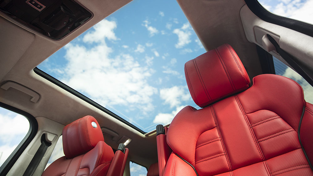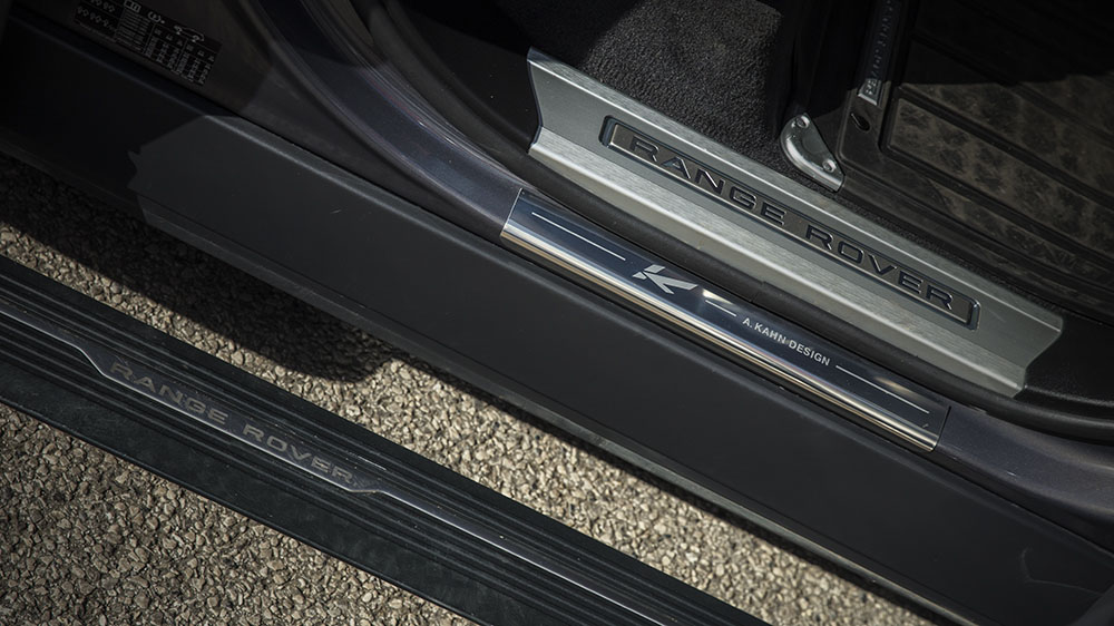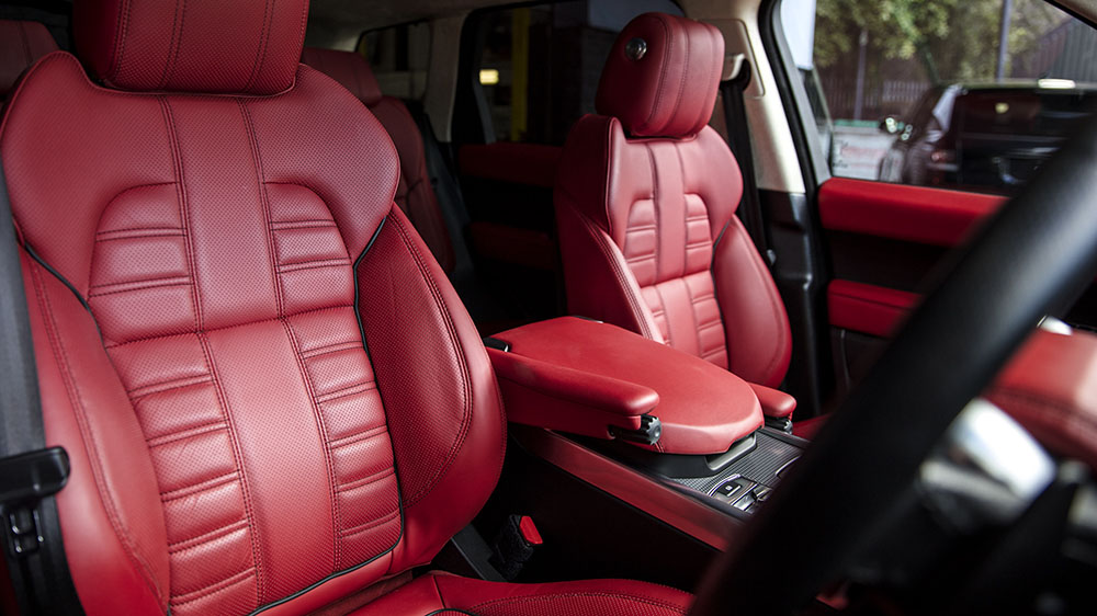 Inside, drivers and passengers of the Project Kahn Range Rover Sport Autobiography Dynamic Pace Car are greeted by new stainless steel door entry sill plates and a vibrant red leather interior.