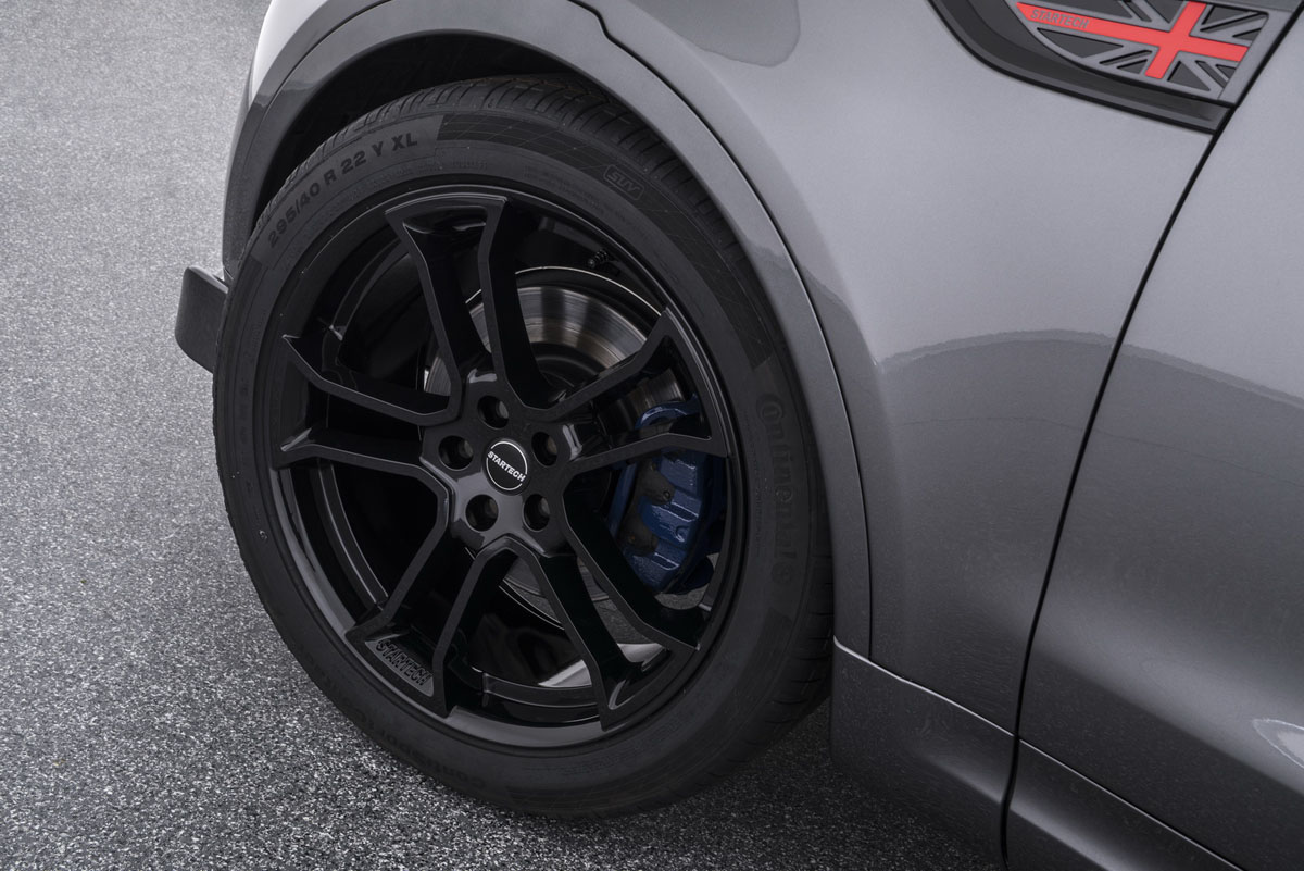 Completing the new design package for the Land Rover Discovery are new Startech Monostar M wheels. These 22 x 10.0J front and rear five-double-spoke wheels have a special wheel hub cover that mimics the look of a center-locking assembly to match their lightweight, high-strength construction. The new Startech Monostar M wheels are also shod in 295/40 R22 low-profile Continental tires.