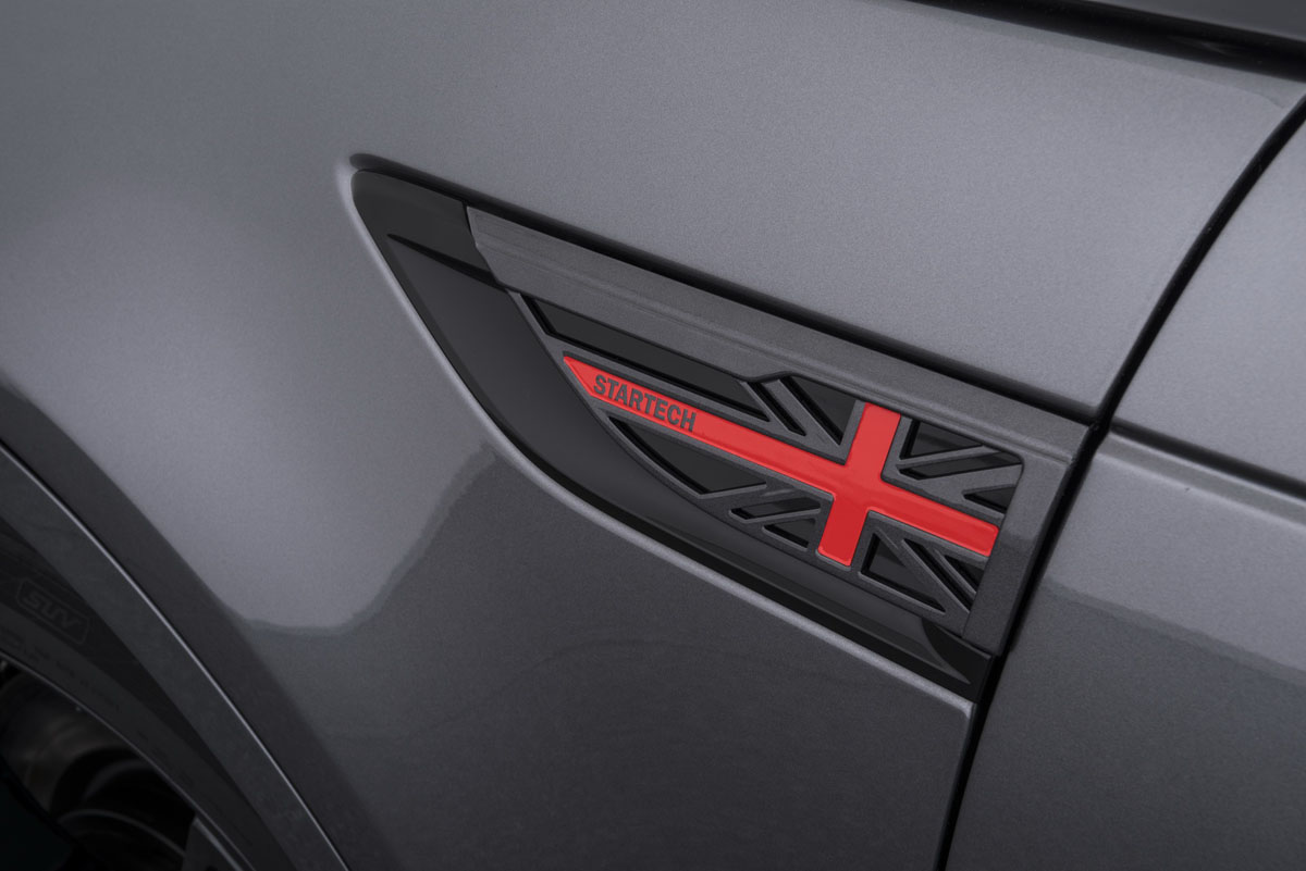 Another highlight on Startech’s Land Rover Discovery design kit are new ‘Union Jack’ inserts on each of the front fenders. The new inserts have a Black and Red color with ‘Startech’ lettering for a more avant-garde look. The color combo also matches the new paint scheme featured on the IAA show car that has a unique high-gloss Black-finished roof.