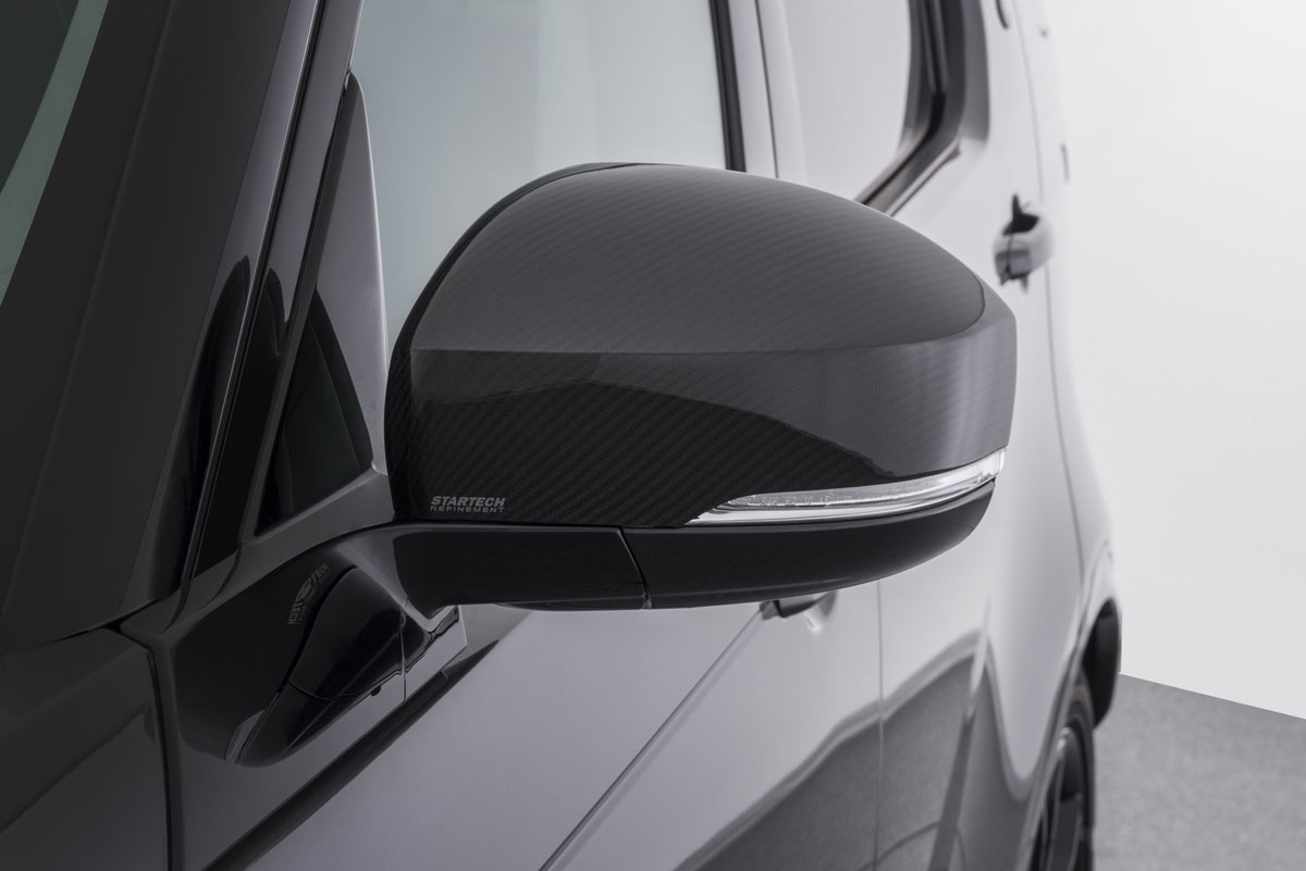 Another highlight on Startech’s Land Rover Discovery design kit are new ‘Union Jack’ inserts on each of the front fenders. The new inserts have a Black and Red color with ‘Startech’ lettering for a more avant-garde look. The color combo also matches the new paint scheme featured on the IAA show car that has a unique high-gloss Black-finished roof.