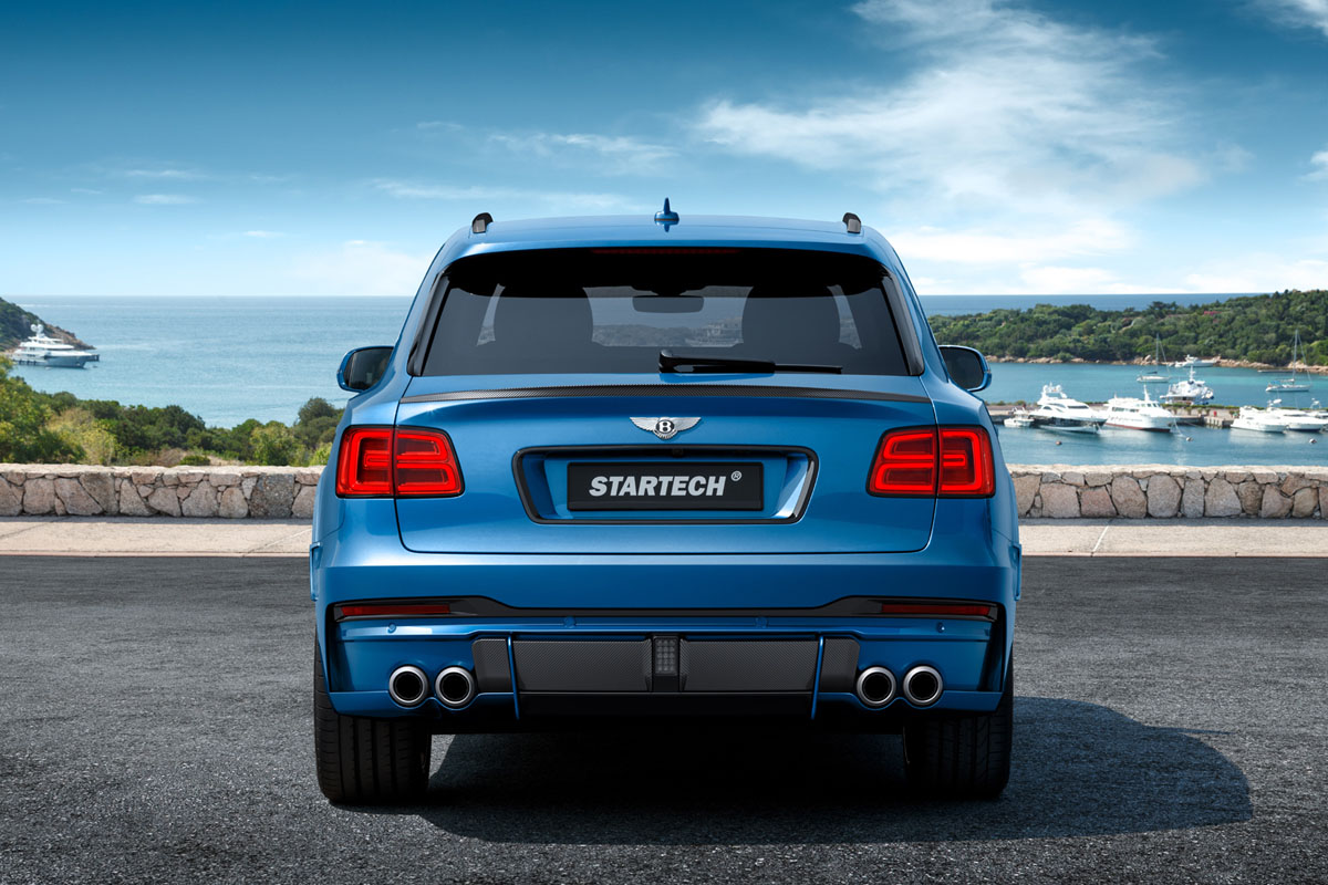Protruding from the rear bumper are four tailpipes that are part of the Startech stainless steel full exhaust system. The system not only gives the twin-turbo 6.0-liter W-12 engine of the Bentley Bentayga a more aggressive sound, but allows drivers to alter the sound profiles at the touch of a button thanks to integrated electronic sound management.
