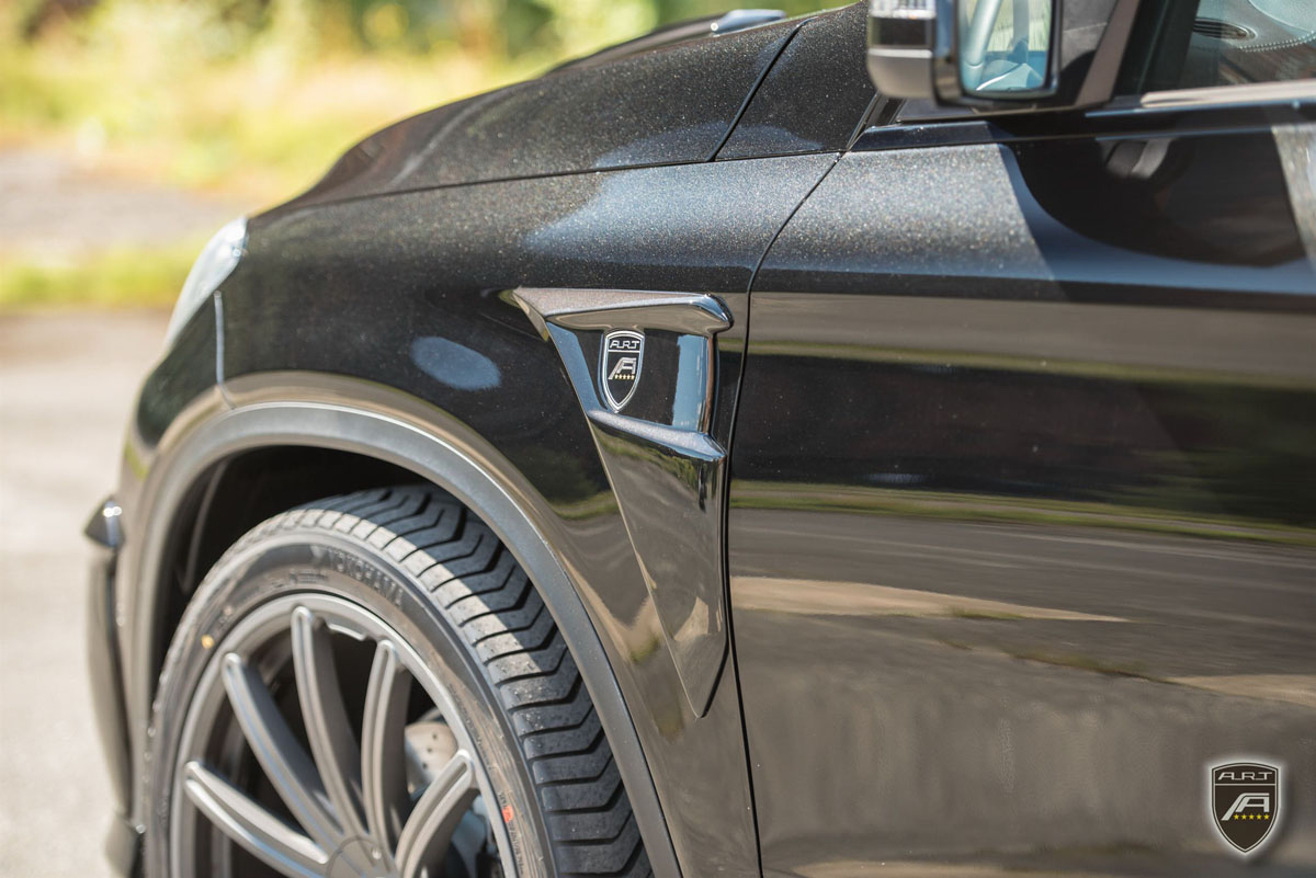 The new A.T.R. GE Coupe features a full aerodynamic body kit from front to the rear, starting with a new front spoiler flanked by air vents to create the impression of speed. The new two-dome trim pieces for the hood emphasize power while dual front fender attachments with the A.R.T. Tuning logo help distinguish the SUV. An eight-part door trim set complements the more aggressive styling along with the two rear skirt attachments and diffuser with dual tailpipes. A rear spoiler and roof spoiler combo helps to generate downforce for those high-speed moments experienced by the new GE Coupe. Each part can also be given custom-colored finishes and coatings if owners desire.