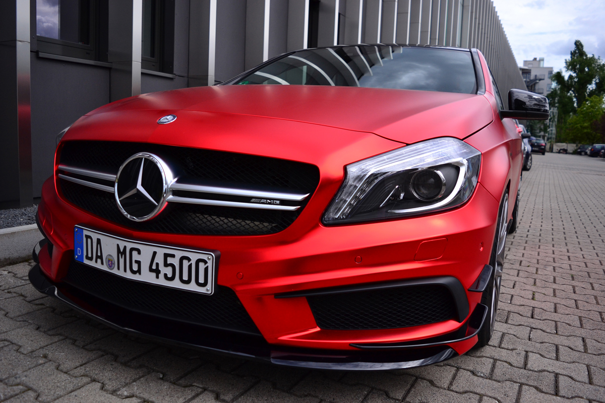 Do you like the Matte Chrome Red Mercedes-Benz A45 AMG with 435 HP by Folien Experte?
