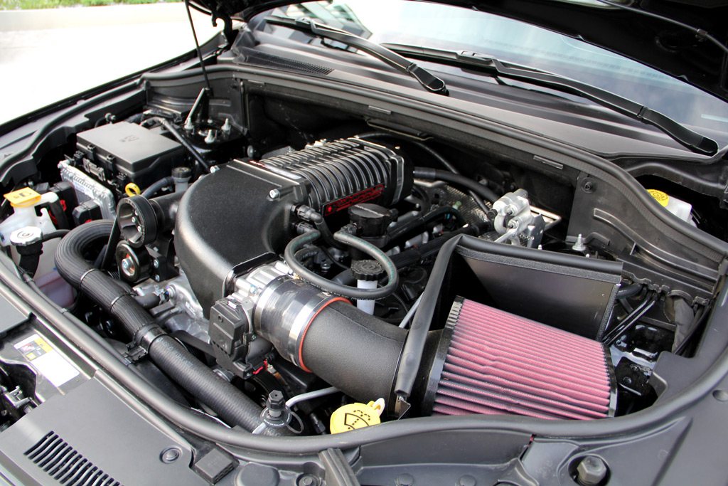 The massive, 6.4-liter HEMI V-8 that sits under the hood of the Jeep Grand Cherokee SRT is a beast by itself with its 475 American ponies. But, GeigerCars added a bit of German power with their new supercharger kit that includes a 2.9-liter supercharger, intercooler, and various internal upgrades such as stronger pistons. As an option, a larger oil cooler can be installed for 1,430 Euros upon customer request. A new plug-in ECU software device alters fuel and ignition mapping to result in a whopping 718 horsepower and 527 lb-ft. of torque.
