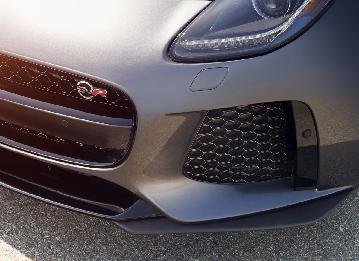 The SVR treatment also includes quite a variety of aerodynamically-optimized upgrades on the Jaguar F-Type SVR. The front bumper was extended to prevent air from reaching the wheels while a new front valence and undertray reduces lift. New hood vents help dissipate heat more effectively for the 5.0-liter V-8 engine and fender vents remove heat from the braking system.