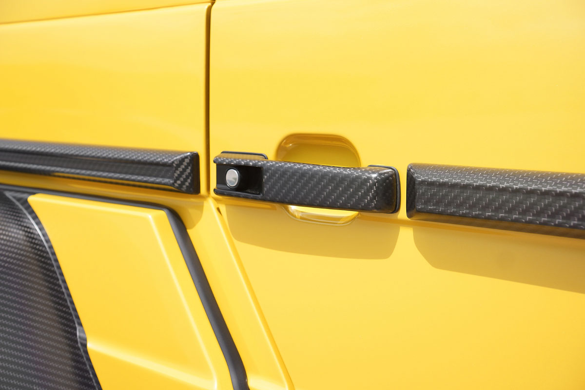 Carbon fiber makes up the new hood which features new vents to keep the 5.5-liter, twin-turbocharged engine cool. The naked material is featured on the A-pillar and side trims along with the side mirrors, flared fenders, and side covers. A new pair of running boards decorate each side of the mighty SUV and boast integrated undercar LED lights. The exterior conversion is finished off with a rear carbon fiber valence that matches the design of the front unit.