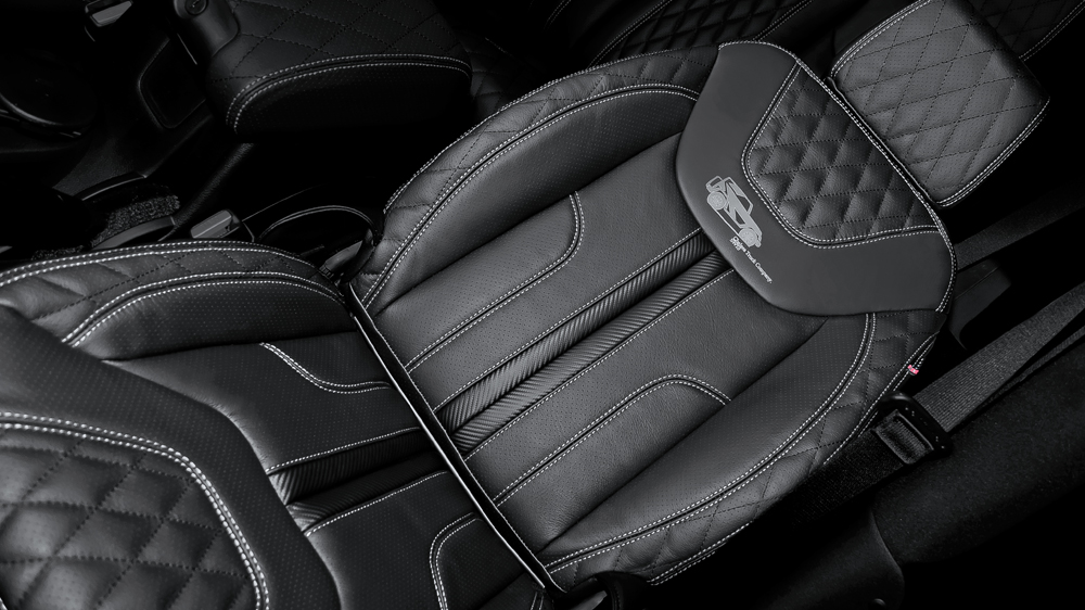 -Front & Rear Seats Quilted & Perforated in Black Leather with Silver Contrasting Stitching