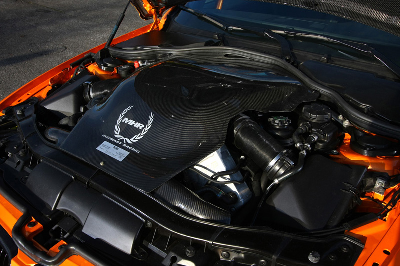 The low weight of the Manhart Racing MH3 V8 RS Clubsport comes from the use of weight-optimized carbon fiber bodywork. The cowl, CLS-designed trunk lid, fender flares, and hood were all made from the composite material. To improve overall aerodynamics, new side sills, front and rear spoilers, and a rear diffuser were installed. For a finishing touch, Manhart Racing replaced the stock mirrors with carbon fiber units.