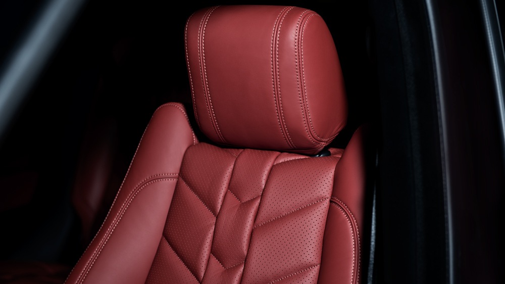 While the Imperial Blue paint of the Project Kahn Range Rover Sport RS Pace Car is definitely inspiring, the Cranberry Bridge of Weir Herringbone leather seats provide an eye-catching contrast that invites occupants to experience their comforting touch. The door tops, arm rests, center console, instrument binnacle, and steering wheel hub all wear the same leather color for a custom-tailored, high-end feel. As an added bonus, a full machined aluminum foot pedal set and stainless steel door entry sill plates were also installed.