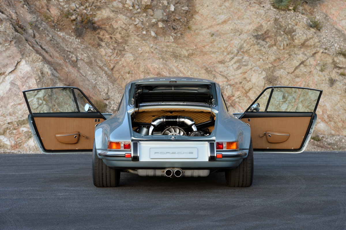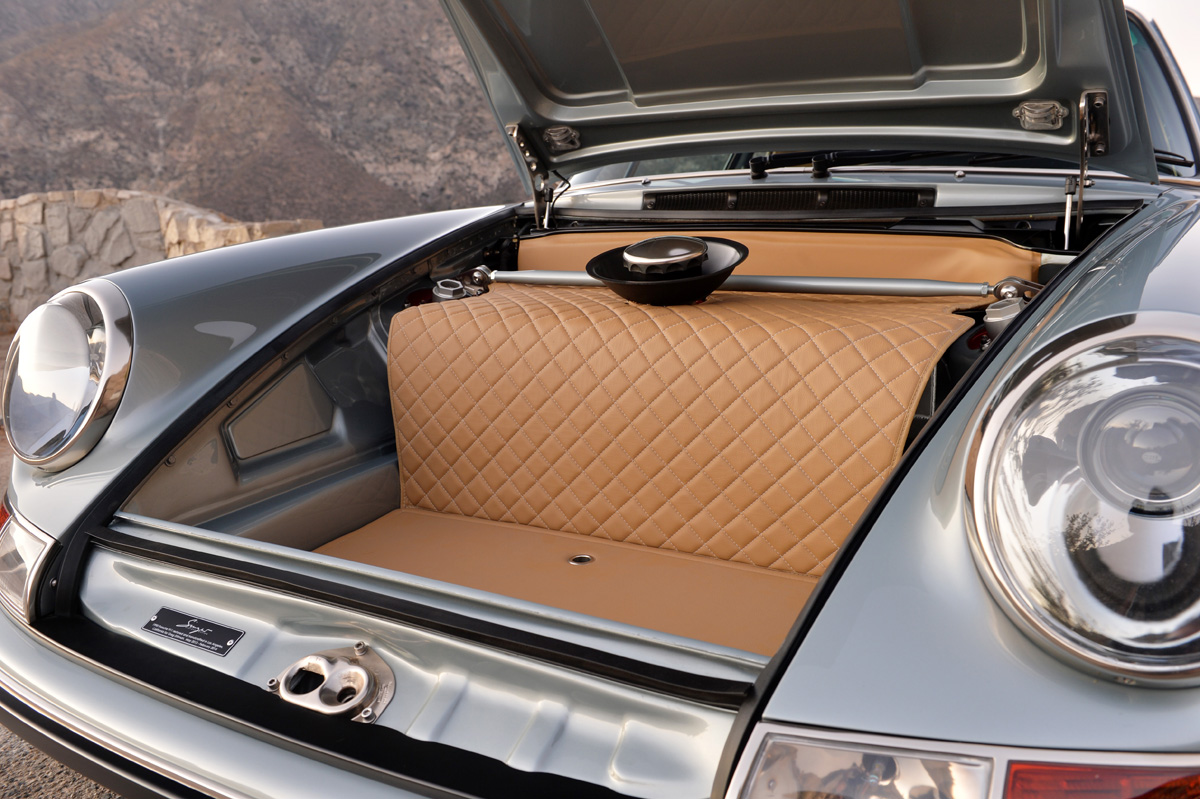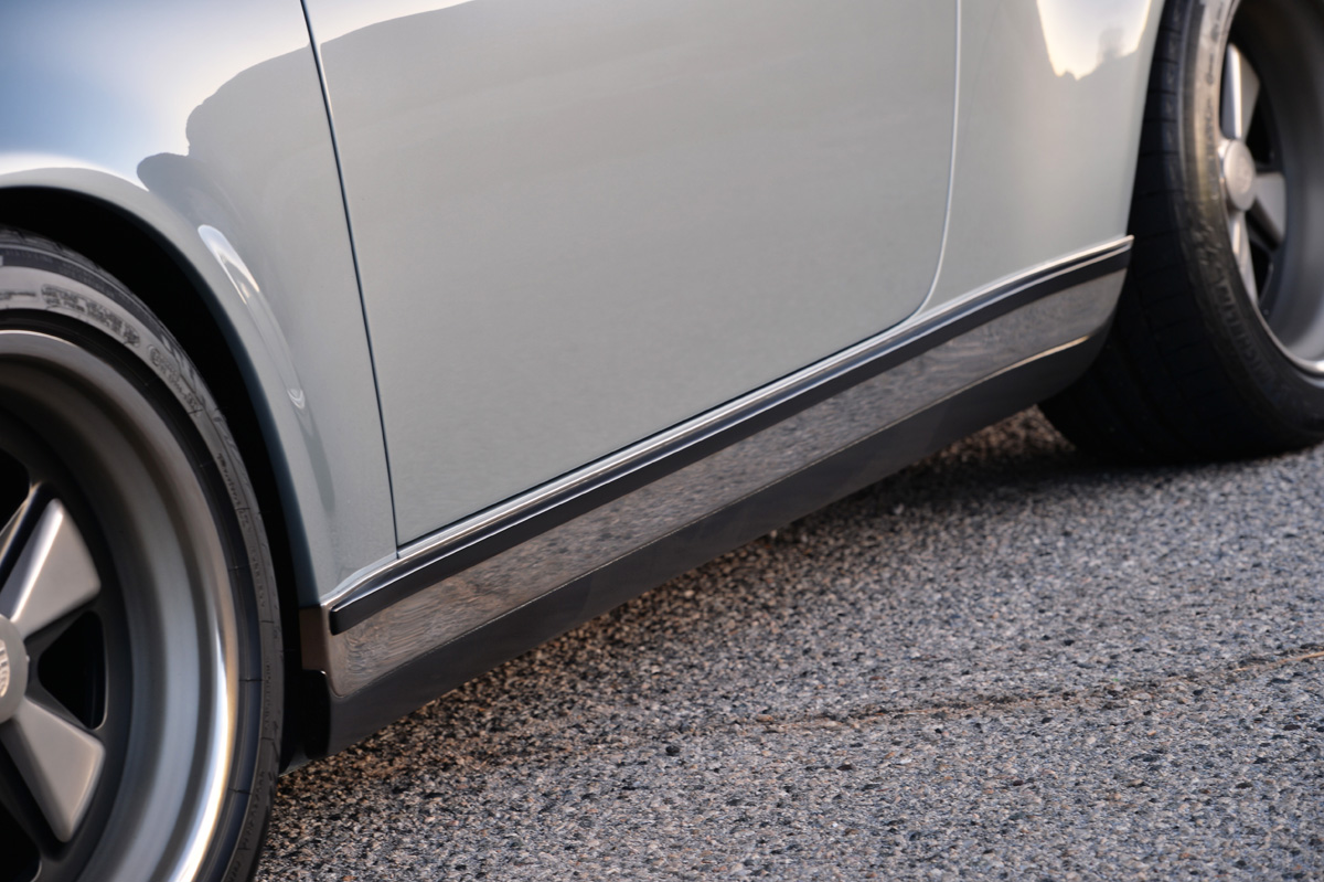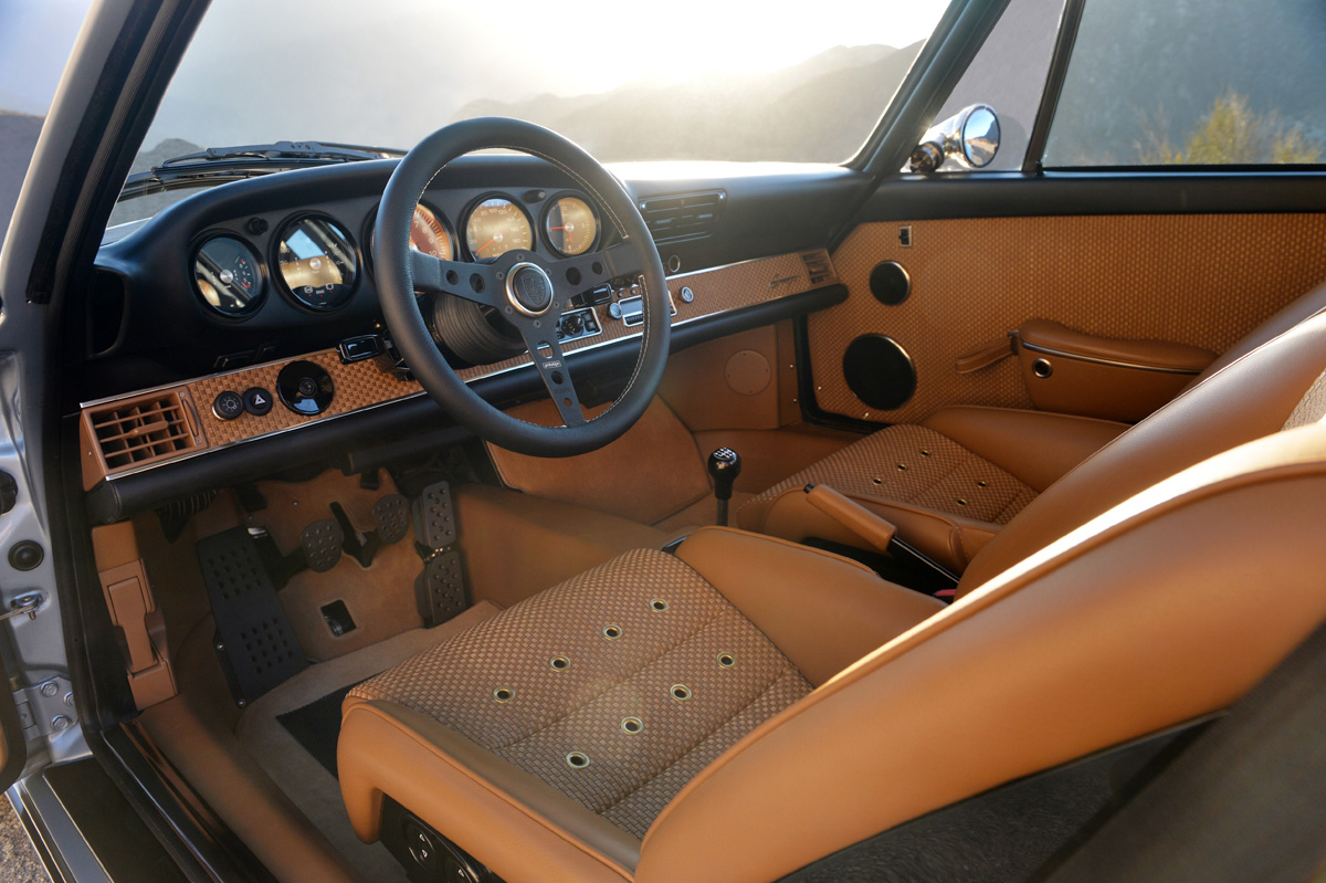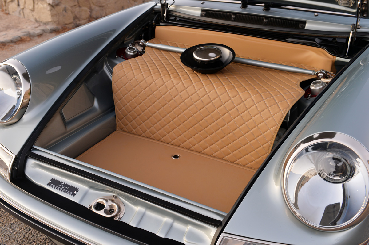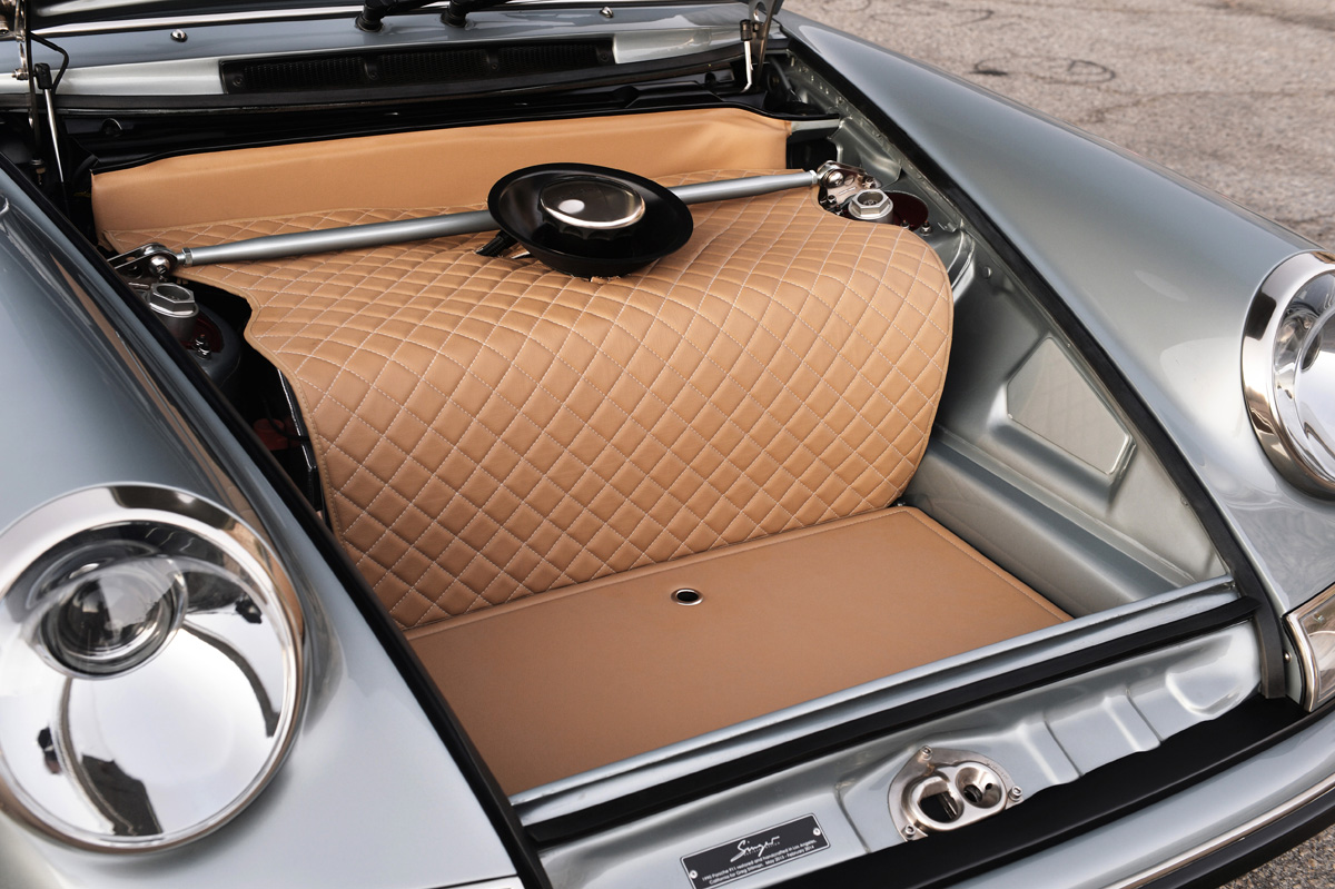 “Each machine we work with has its own special touches,” said Rob Dickinson, creative director and founder of Singer Vehicle Design. “As an example, ‘Virginia’ is the first of the cars we’ve restored that wears the full ‘Touring’ trim on the bumpers and rockers and is the only vehicle to date where a customer has chosen to align an exterior of metallic Fish Silver paint with Sand-Beige interior leather weave – but the true magic really comes alive visually in the ‘checkerboard’-esque look of the interior – we’ve used a slightly lighter suede to create a truly graphic effect. For us, it’s those nuances, personified by our attention to detail that matter most – because our mantra remains that everything is important.”
