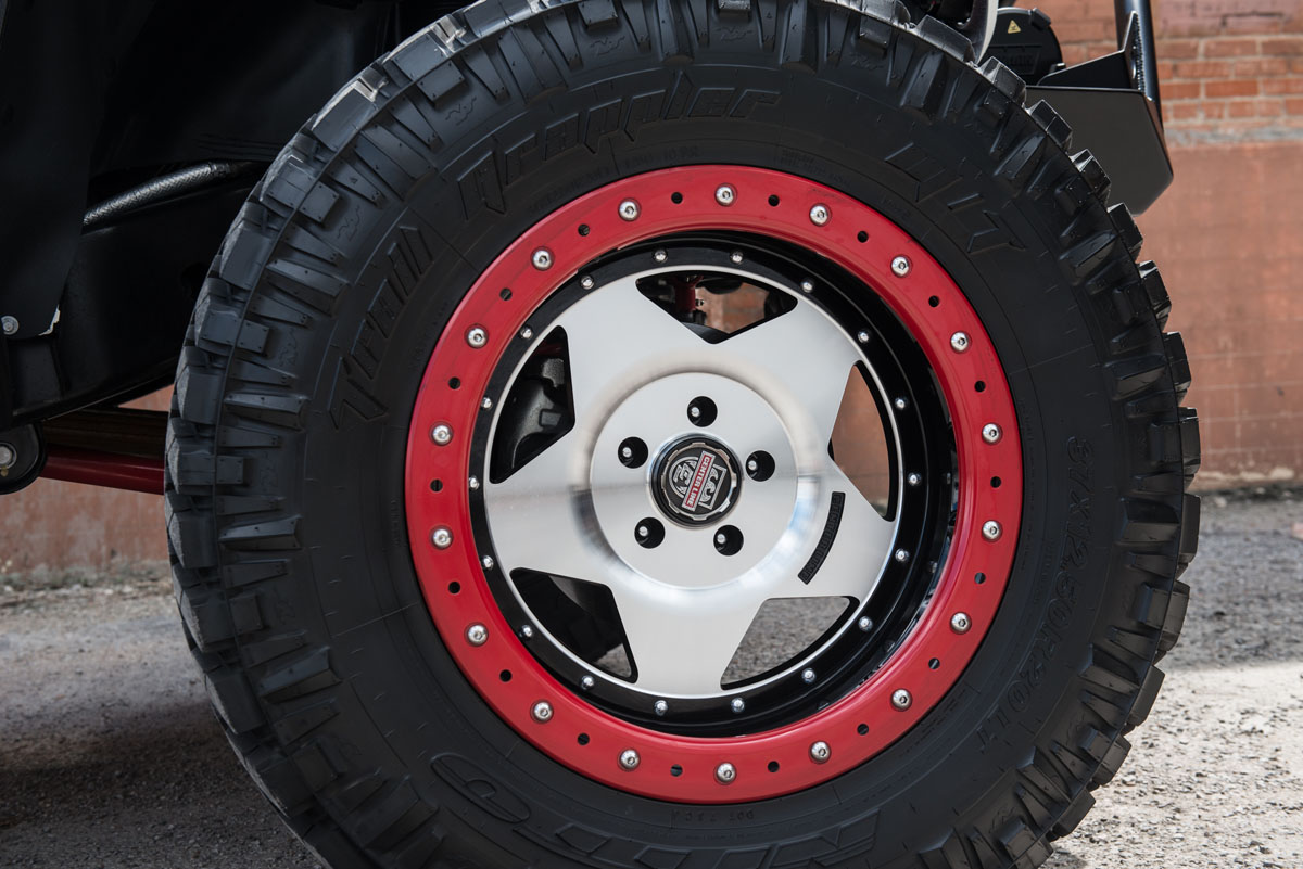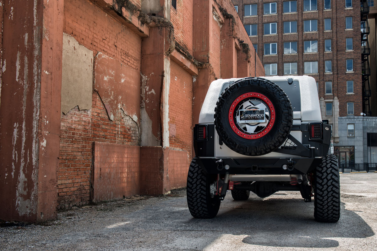 Hiding all those goodies is a new set of Center Line Wheels that provide the perfect balance of off-road functionality and head-turning style. The new Center Line RT1X wheels measure 10.0 x 20 at the front and rear axles, and boast vibrant red trim rings and satin black lips with exposed hardware. The five-spoke wheels are also shod in 37/12.5 R20 Nitto Tire Grappler tires to ensure the Starwood Motors Jeep Wrangler can go anywhere with ease.