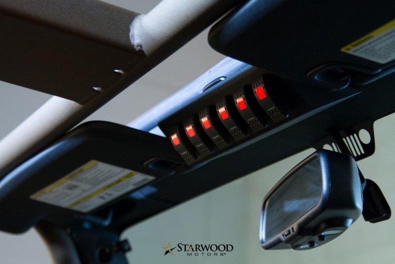 That same capability can be utilized in the custom Jeep at night, where it turns darkness into day. Nova headlights, tailgate lights, rock light, 10-inch front bumper light, and work light provide clean, bright light when the sun goes down. But that’s only part of the vibrant story, an additional Vision X Solstice Solo LED on the A-pillar allows drivers to illuminate specific areas, while an Antique White Kevlar hood light bar with five-pack of LEDs brightens things even more.