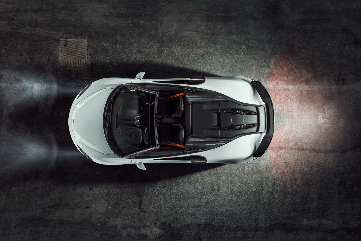 The 3.8-liter, twin-turbocharged V-8 engine in the McLaren 570S can be outfitted with a choice of three different upgrade programs, each of which can be activated or deactivated at the push of a button. The most powerful upgrade includes a plug-and-play Novitec N-Tronic module along with a Novitec Race high-performance exhaust system. This boosts output all the way up to 646 horsepower at 7,450 RPM and 510 lb-ft. of torque at 6,250 RPM. That’s good enough to send the Novitec McLaren 570S Spider to 62 mph in just 3.0 seconds, flat, and to a top speed of 208 mph. As an added bonus, the throttle is more responsive and the power curve is flatter throughout the rev range.