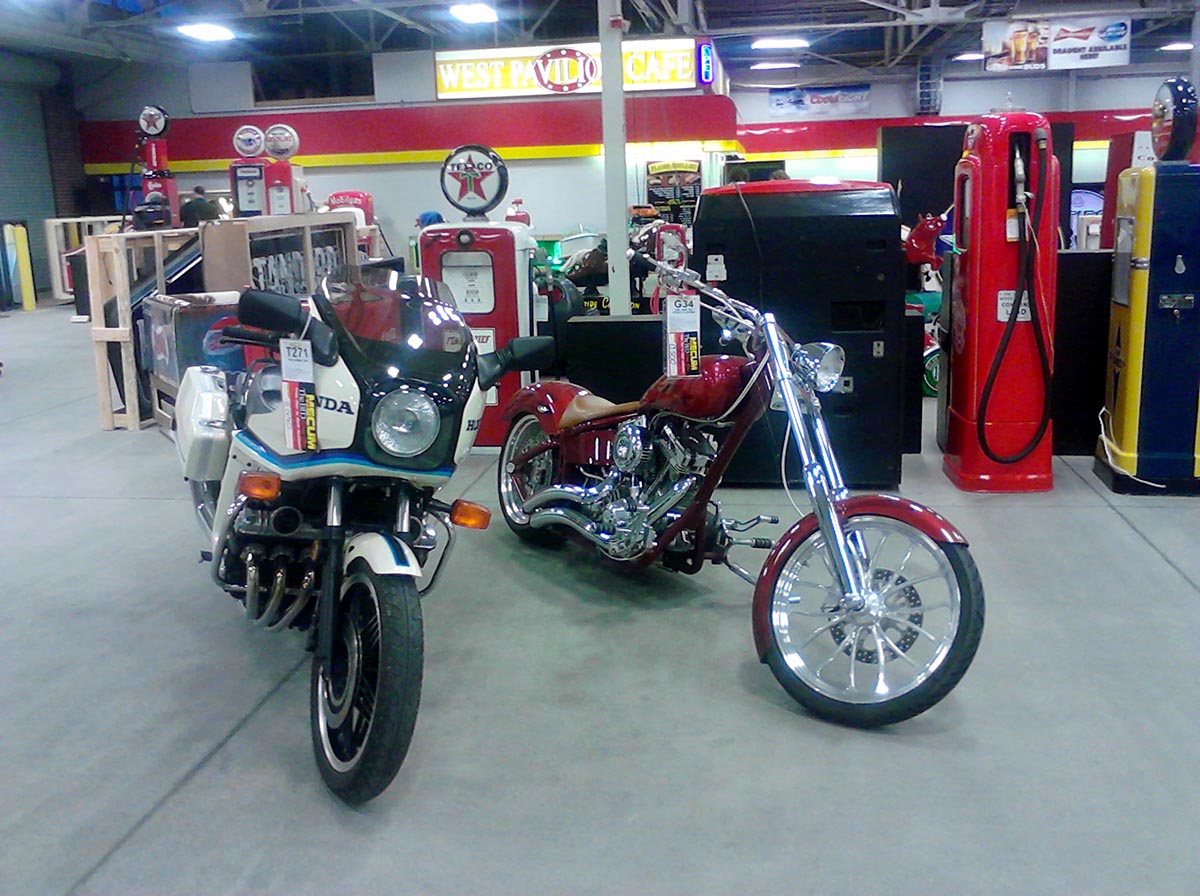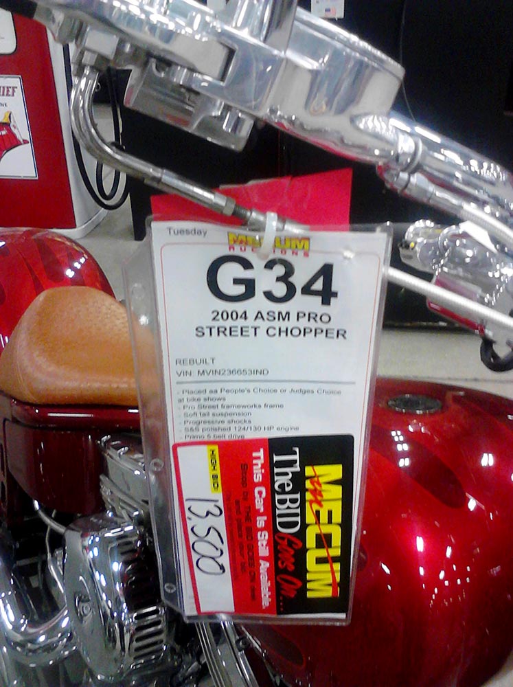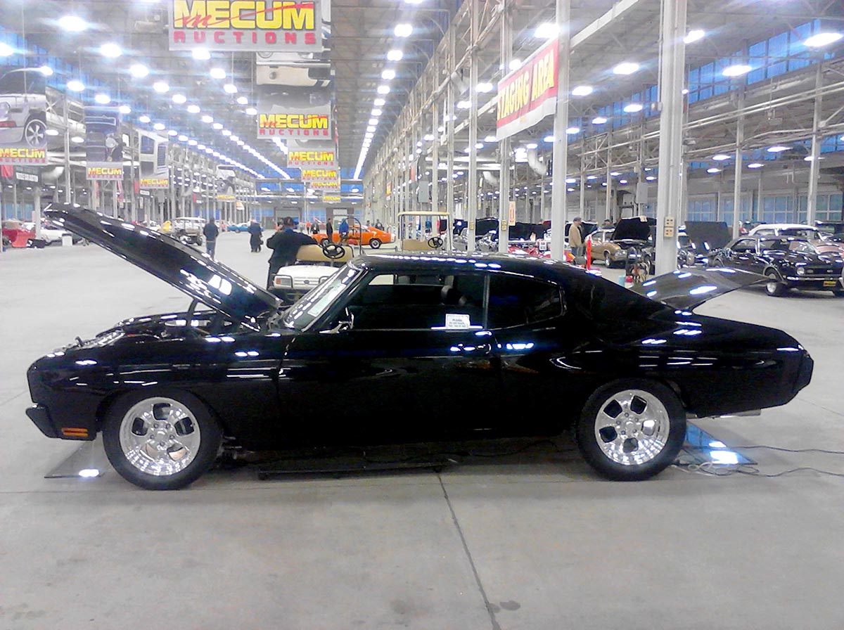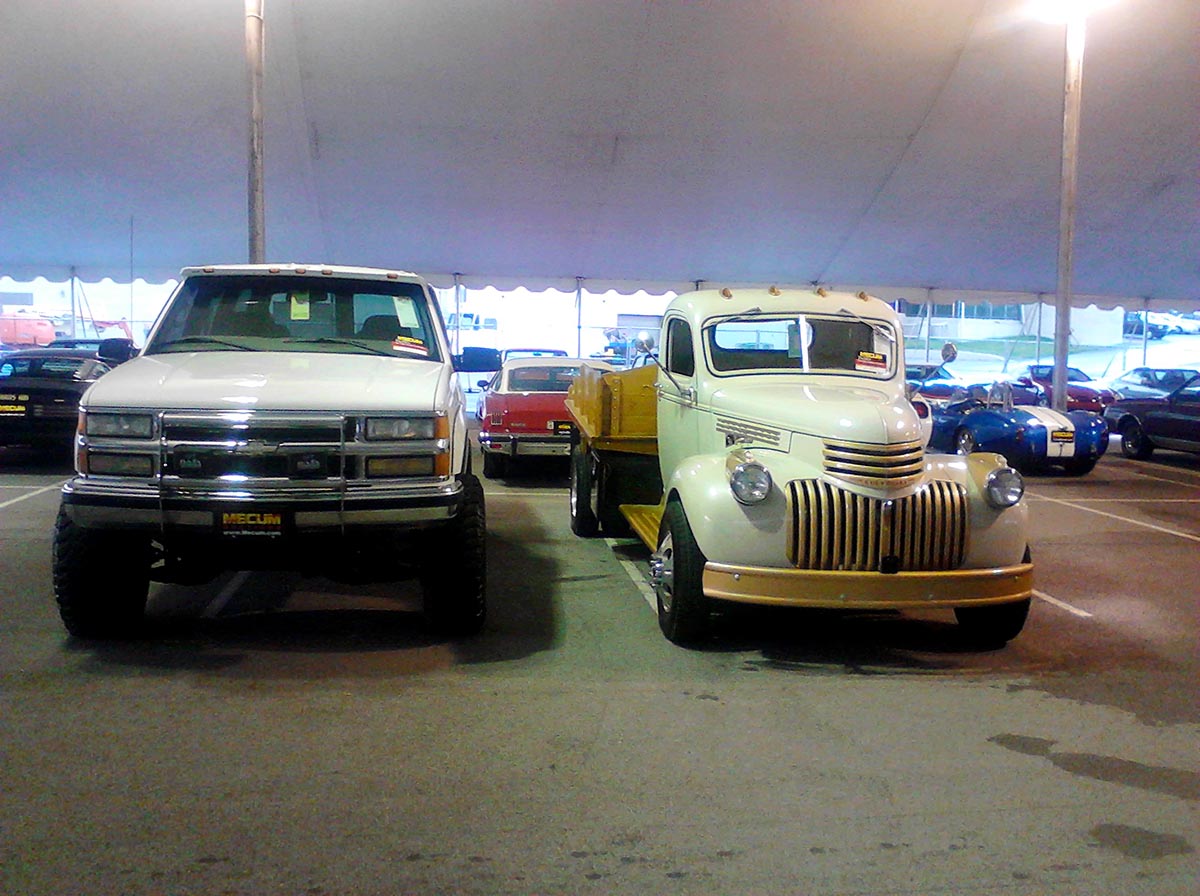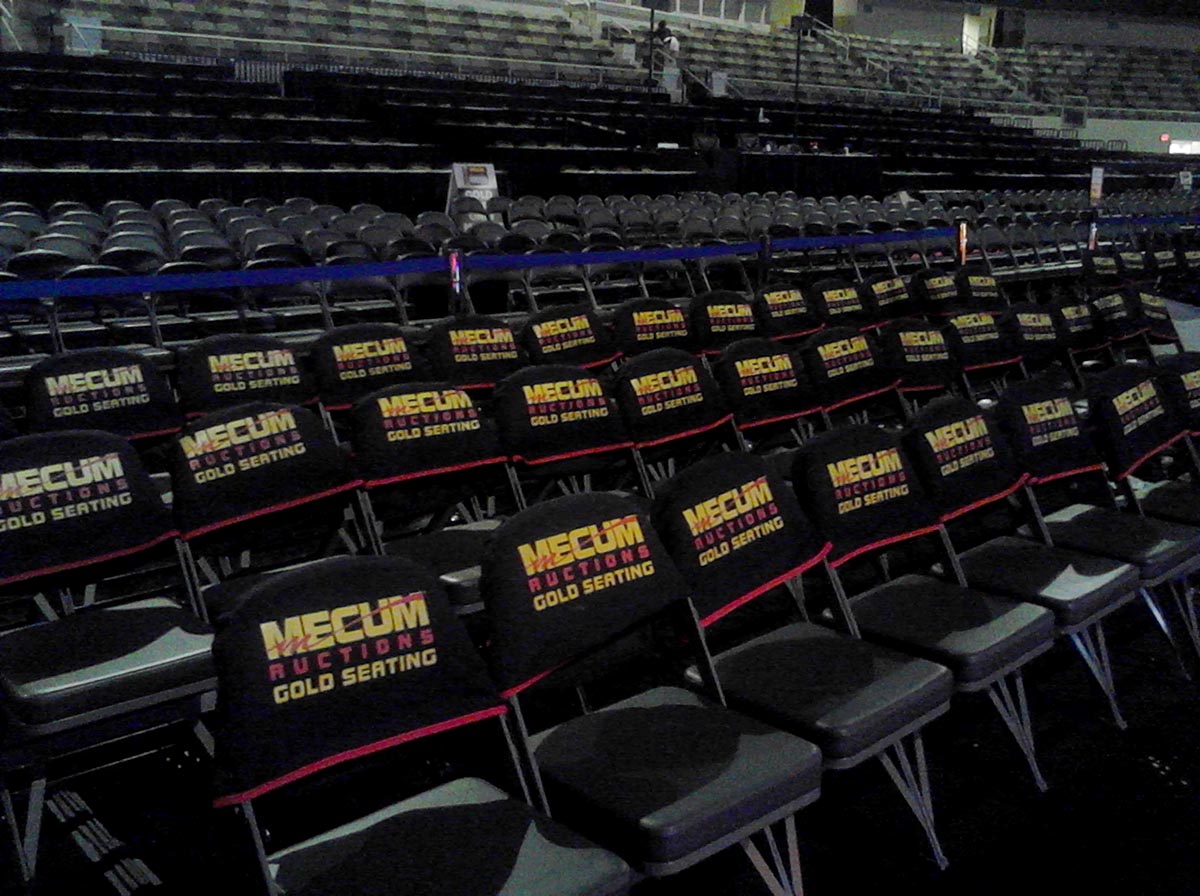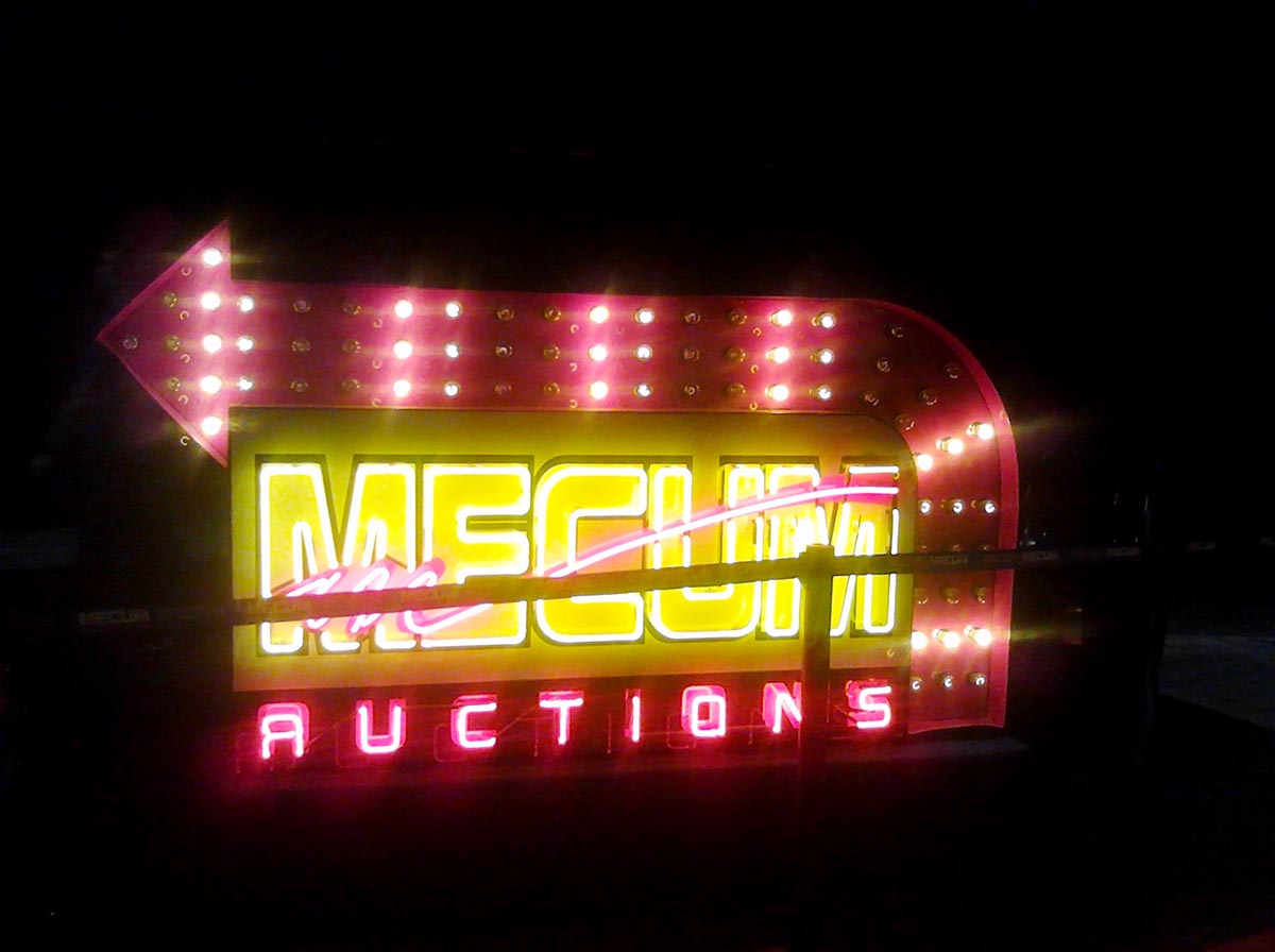 As you would suspect the Ford vs. Chevy debate ensued as my friend, Danya refused to acknowledge the exhaust burble of a ’59 Corvette, but demanded that we stand at attention when a 429 Mustang cleared its raspy throat. Good debate, good cars, good times. The lights dimmed shortly after the last car passed the block and we took one final trip around to see the cars. One notices that Mecum is a sales spot for more than cars. EVERYTHING automotive is for sale here from vintage gas pumps to neon signs for the collector’s garage. On our way out, we walked across the block. As my friend Rick reminisced with an old buddy, I looked around the arena and could still sense excitement in the air. Petrol and passion seemed to be mixed with oxygen and the vacant reserved seats signified the fact that big money had been shelled out for precious metal. I wish I had the space to talk about every single car I saw, but alas, I don’t. I will encourage you to enjoy our photo gallery, check out the Mecum website to see which cars went for the most at the auction and to find out when the Auction is coming to a city near you. It is a trip well worth the price of admission and a perfect gift to any aficionado of the hobby. I am now a Mecum Man for life!