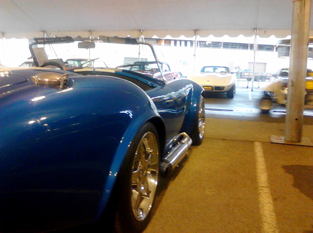 Three tents (each the size of a football field) and two pavilions housed all the cars for sale. I enjoyed a trip down memory lane and saw the cars that I grew up ogling at: Novas, Cobras, Panteras, ‘Cudas and Astons. Along with the vast number of cars, buyers were more than happy to show off their new acquisitions by revving engines for us.