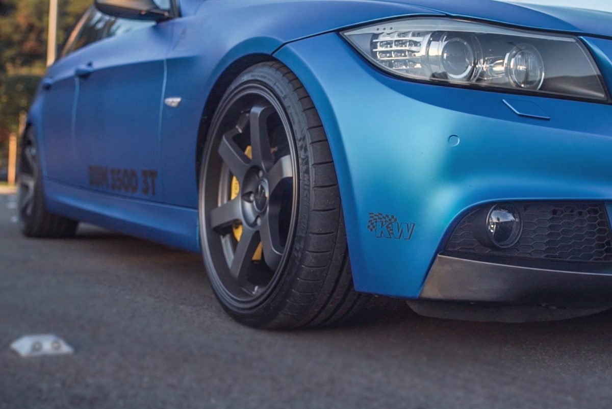 What may look like your standard E91 BMW 330d wrapped in a blue metallic wrap by SFT Carwrap is anything but. The factory turbodiesel engine was replaced with the triple-turbo 3.0-liter Wünderdiesel N57S engine and its eight-speed gearbox from the M550d xDrive. Power quickly rose to 440 horsepower and 627 lb-ft. of torque after a BBM Chiptuning software tune. Both the front and rear axles were taken from the E92 BMW M3 to handle the added power, with the latter benefitting from a 0- to 100-percent locking limited slip differential and 2.81:1 final drive ratio.