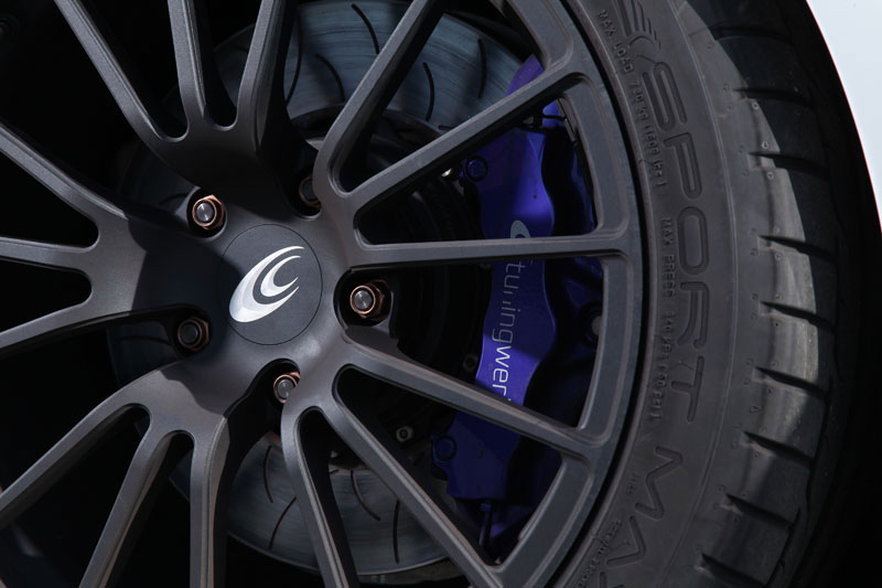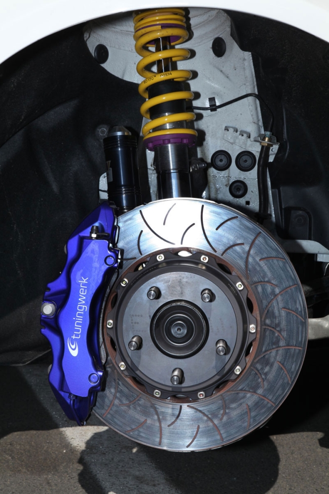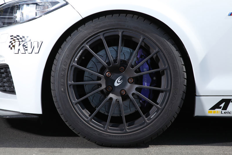 Power is controlled and put to the road thanks to a new set of forged wheels, new brakes, and some suspension bits. Stiffening the body of the BMW M235i RS can be improved by the team at Tuningwerk along with new struts and Uniball axle elements help to sharpen up handling. Controlling that power is the job of the new Brembo six-piston front calipers with 350 x 34 mm steel racing discs while BMW Performance brakes are installed on the rear paired up with stainless steel flex lines and modified DSC/ABS electronics. Hiding all of those upgrades are new Tuningwerk steel forged wheels in an 8.5 x 18 (15.7 lbs.) front and 9.0 x 18 (16.3 lbs.) rear setup with 235/40 R18 and 265/35 R18 Dunlop SportMaxx RT tires.