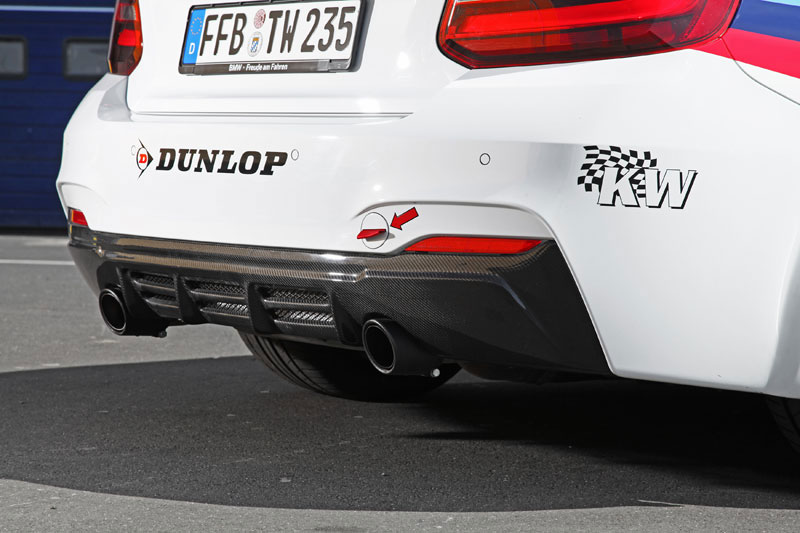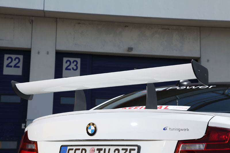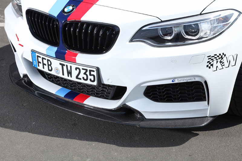 With the Tuningwerk BMW M235i RS being built for performance on the track, the factory aerodynamics had to be tweaked a bit. Here, the German tuner installed a new TW Design carbon fiber front lip, rear diffuser, and rear spoiler to generate more downforce for better stability at high speeds, and braking and handling performance.