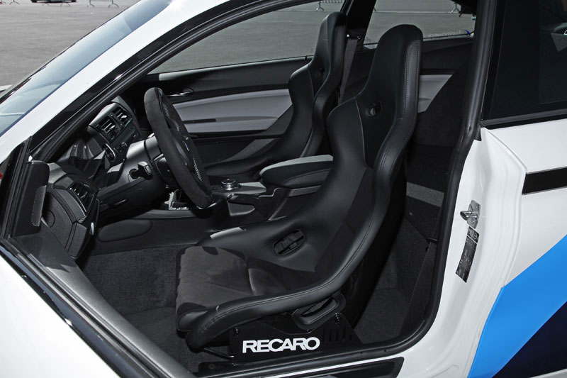 Inside, driver engagement, safety, and weight were the main areas of focus. Tuningwerk equipped the BMW M235i RS with a new pair of Recaro Pole Position front seats on some modified seat rails with six-point harnesses. A new roll cage also helps to protect the driver and passenger from injuries in the event of an accident. All this adds up to an overall dry weight of just 3,131 lbs.